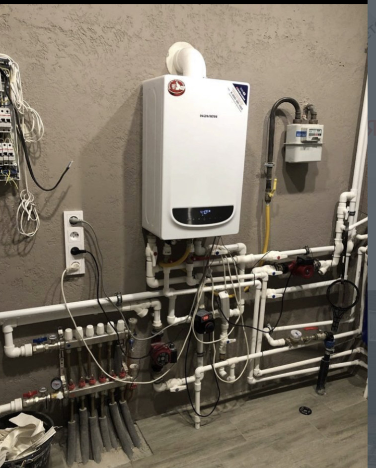 Все коммуникации в доме: электричество 380, централизованная вода, газ, канализация 2 колодца, оптический интернет, установлен боллер горячей воды . Дом отапливается , очень тёплый: первый этаж тёплый пол, второй этаж радиаторы.