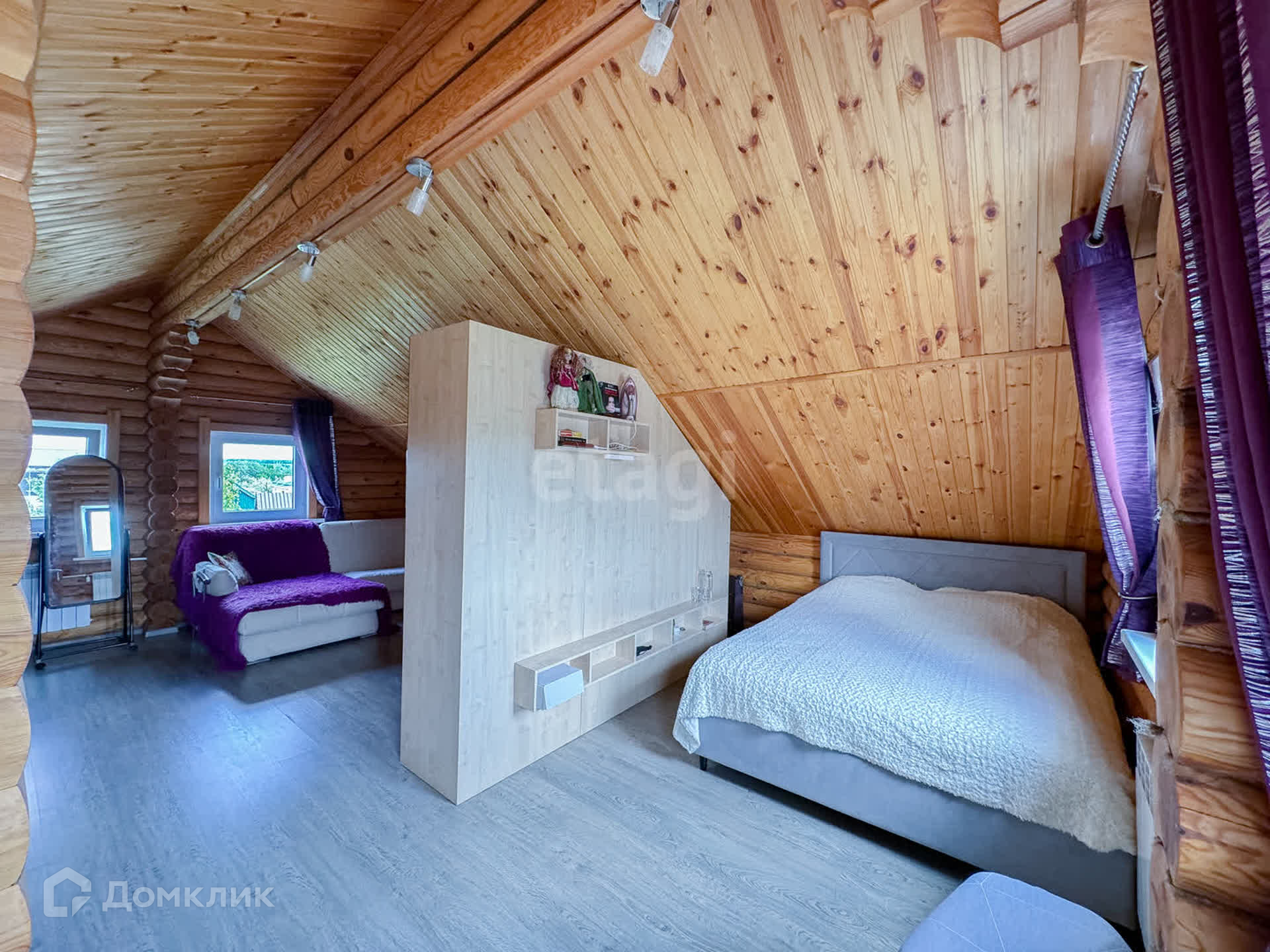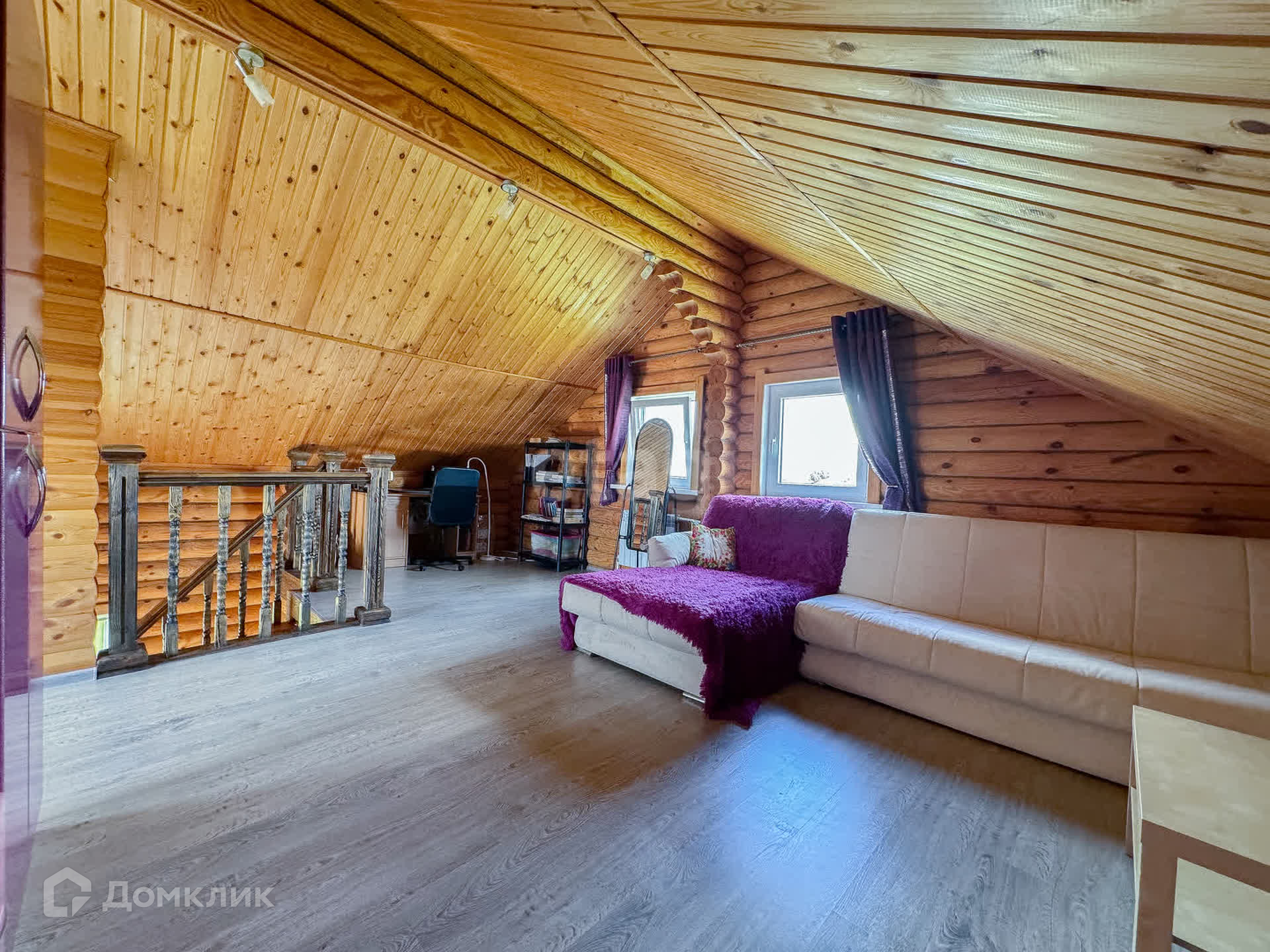 Дом изготовлен из БРЕВНА, крыша — мягкая кровля. Все окна — пластиковые высокого качества, металлическая входная дверь. В доме на 1 этаже: кухня, сан. узел раздельный, котельная, сауна; на 2 этаже — спальные места. Напольное покрытие: на 1 этаже кафель с функцией теплого пола, на 2 этаже — ламинат. В дом проведен газ, электричество. Отопление — двухконтурный котел. Вода — колодец с насосом. Канализация — септик. Подъезд — асфальт. Фундамент — заливная плита. Забор с трех сторон из профнастила, лицевая сторона — облицовочный кирпич.