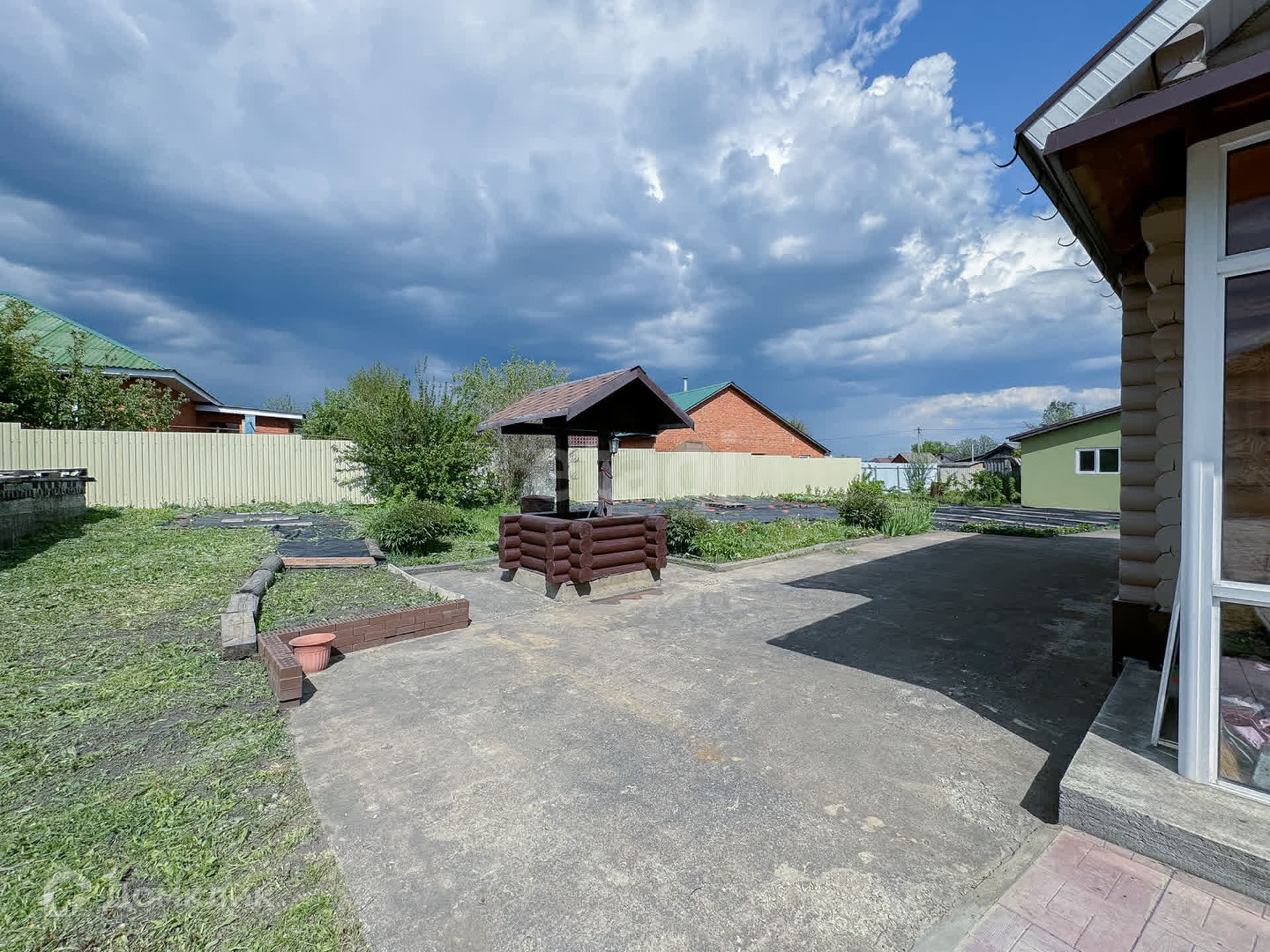 Участок оснащен плодовыми деревьями: яблони, груша, вишня, клубника и виктория.