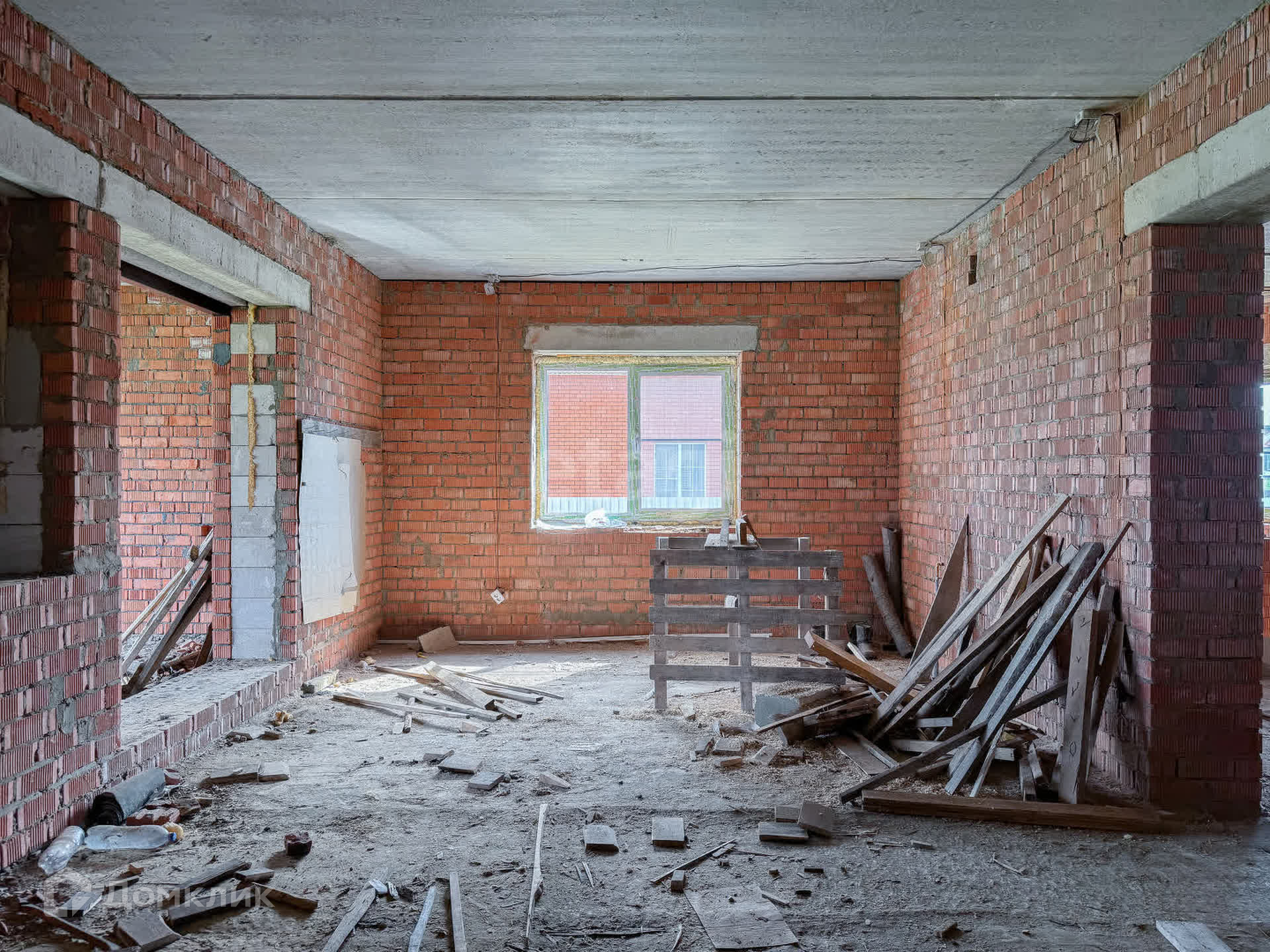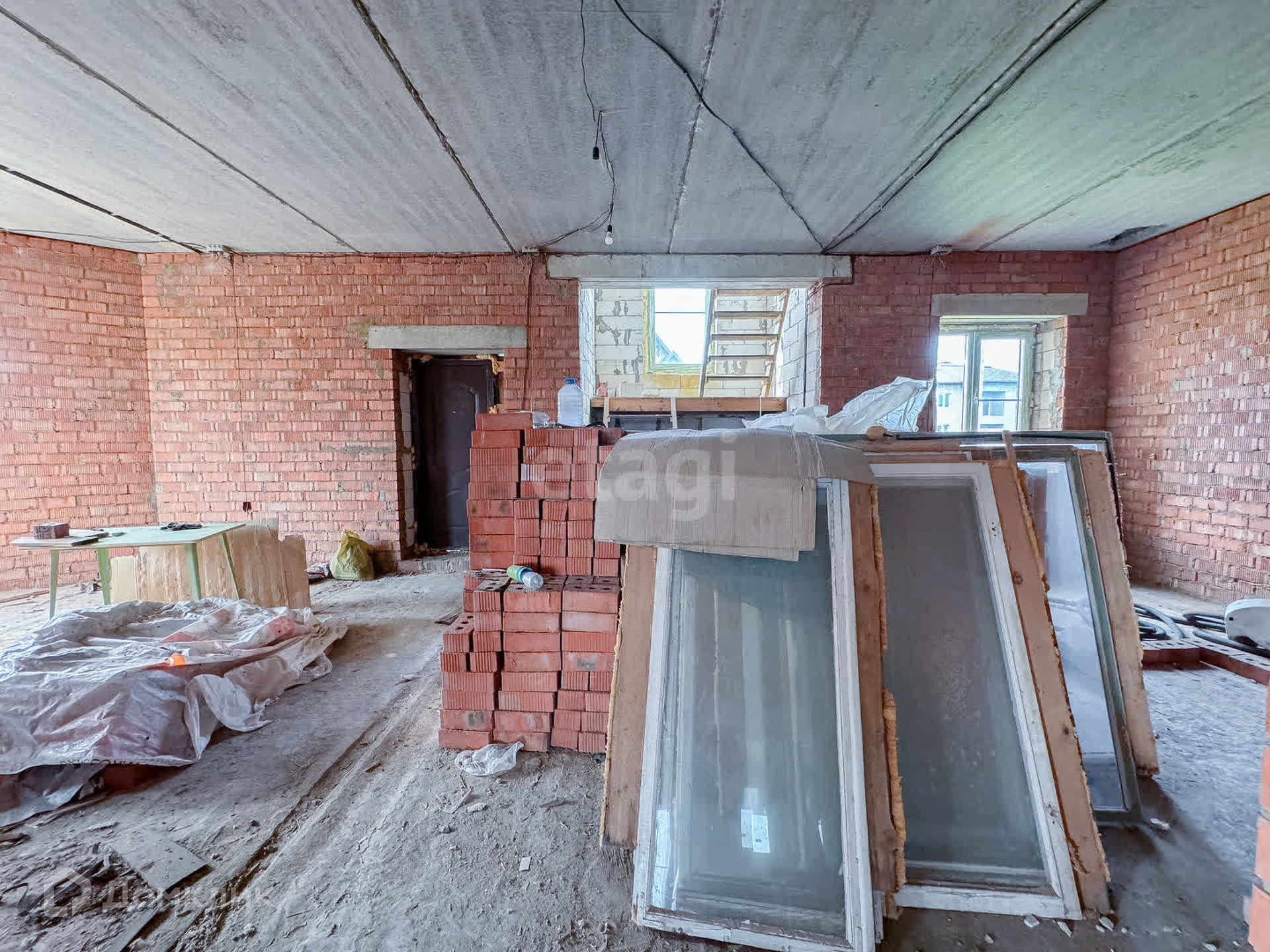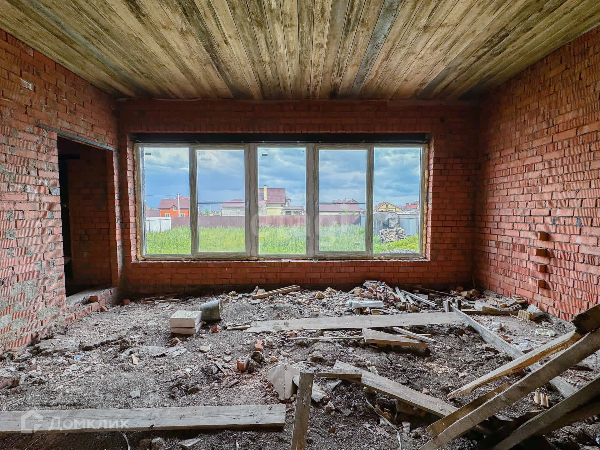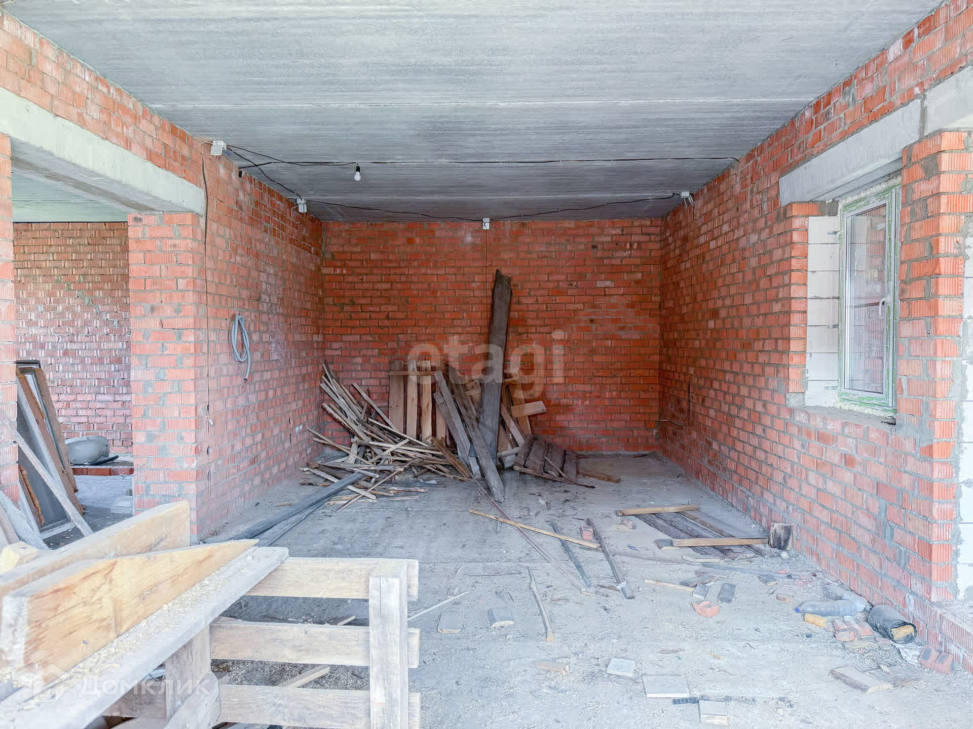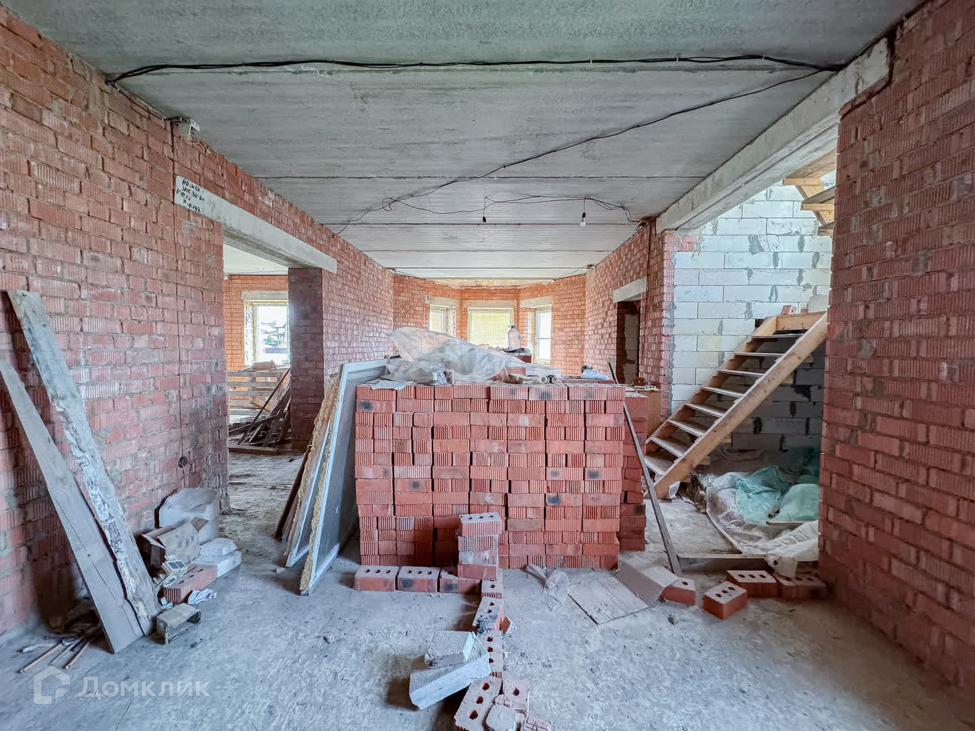 О доме: с цокольным — 3 этажа. Фундамент блочный. Стены из пенобетона, снаружи облицовочный кирпич, внутри выложены красным кирпичом. Толщина стен 45 см. Высота потолка цокольного этажа: 2,2 м. Первый этаж: 3 м. Окна — ПВХ, трехкамерные стеклопакеты. Крыша — металлочерепица. Участок: ровный, не разработан, размежеван.