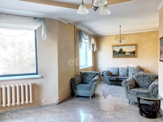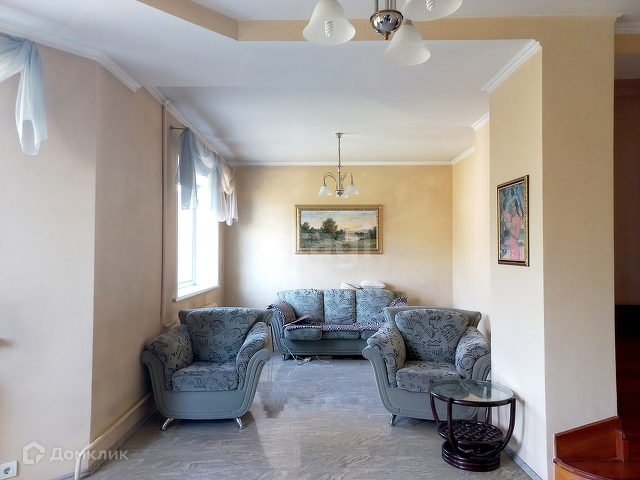 На 1 этаже расположены кухня, гостиная, зал, кабинет, санузел и гардеробная комната. На втором этаже 3 спальни, балкон и балкон-галерея, из которых открывается красивый вид во двор.