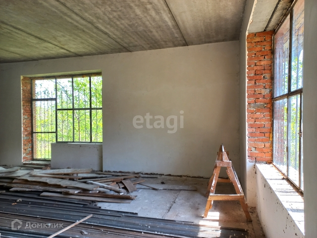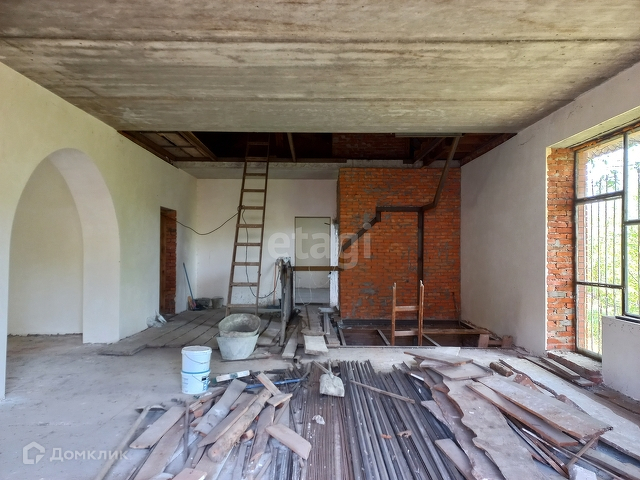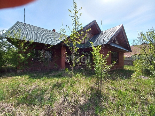 Общая площадь участка 10 соток. На участке расположен дом незавершенного строительства. 2 этажа общей площадью 121,6 кв. м. Второй этаж мансардного типа. Подвал с высоким потолком под всем домом. Перекрытия железо-бетонные. На первом этаже 3 комнаты и санузел, стены выровнены и оштукатурены, есть камин. На втором этаже свободная планировка, без отделки, можно сделать 3 уютные комнаты. Газ проходит вдоль участка, вода, свет - заведены в дом. Канализация - септик. Место очень красивое, тихое, спокойное, умиротворенное, вдали от шума и суеты! Рядом лес.