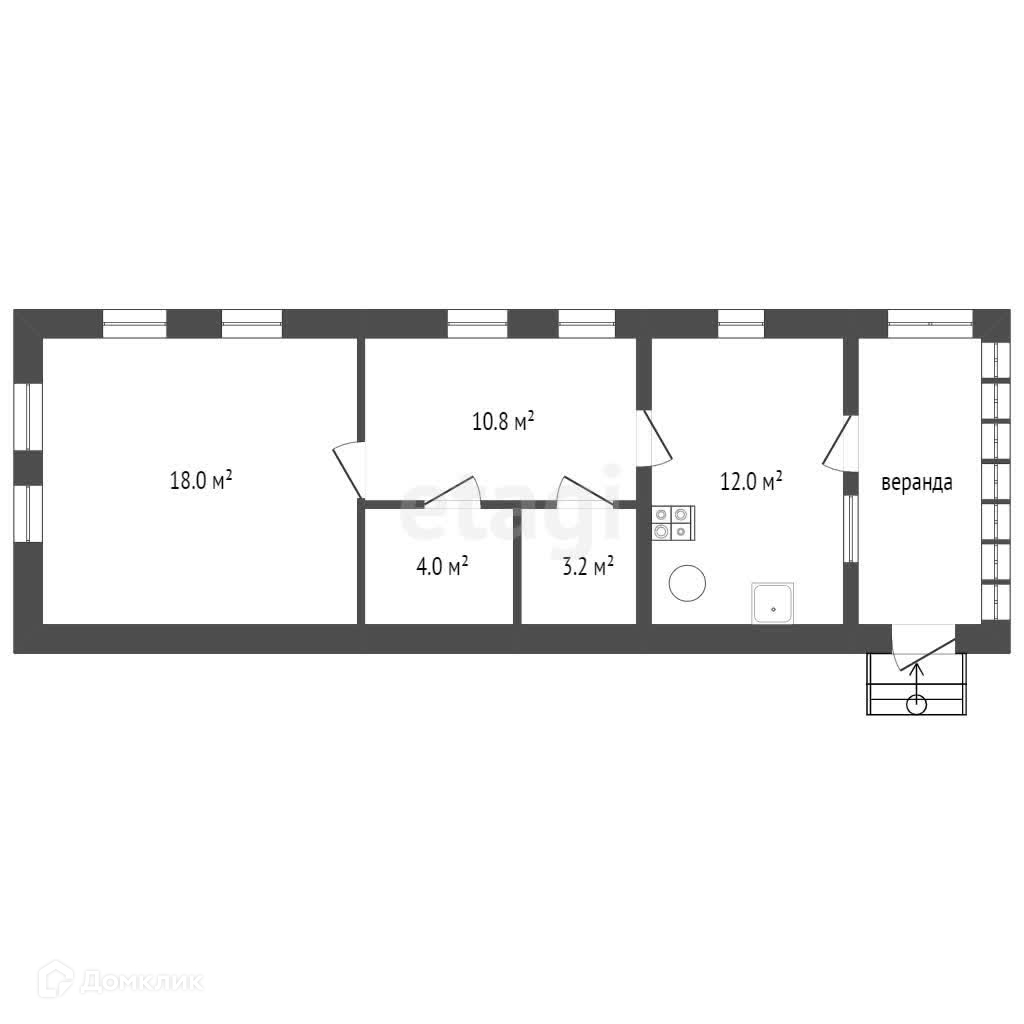 Дом деревянный, облицован штукатуркой. В доме три комнаты, кухня, веранда. Окна ПВХ, новый газовый котел. Участок имеет прямоугольную, вытянутую форму на котором можно организовать как сад так и место для отдыха на природе.