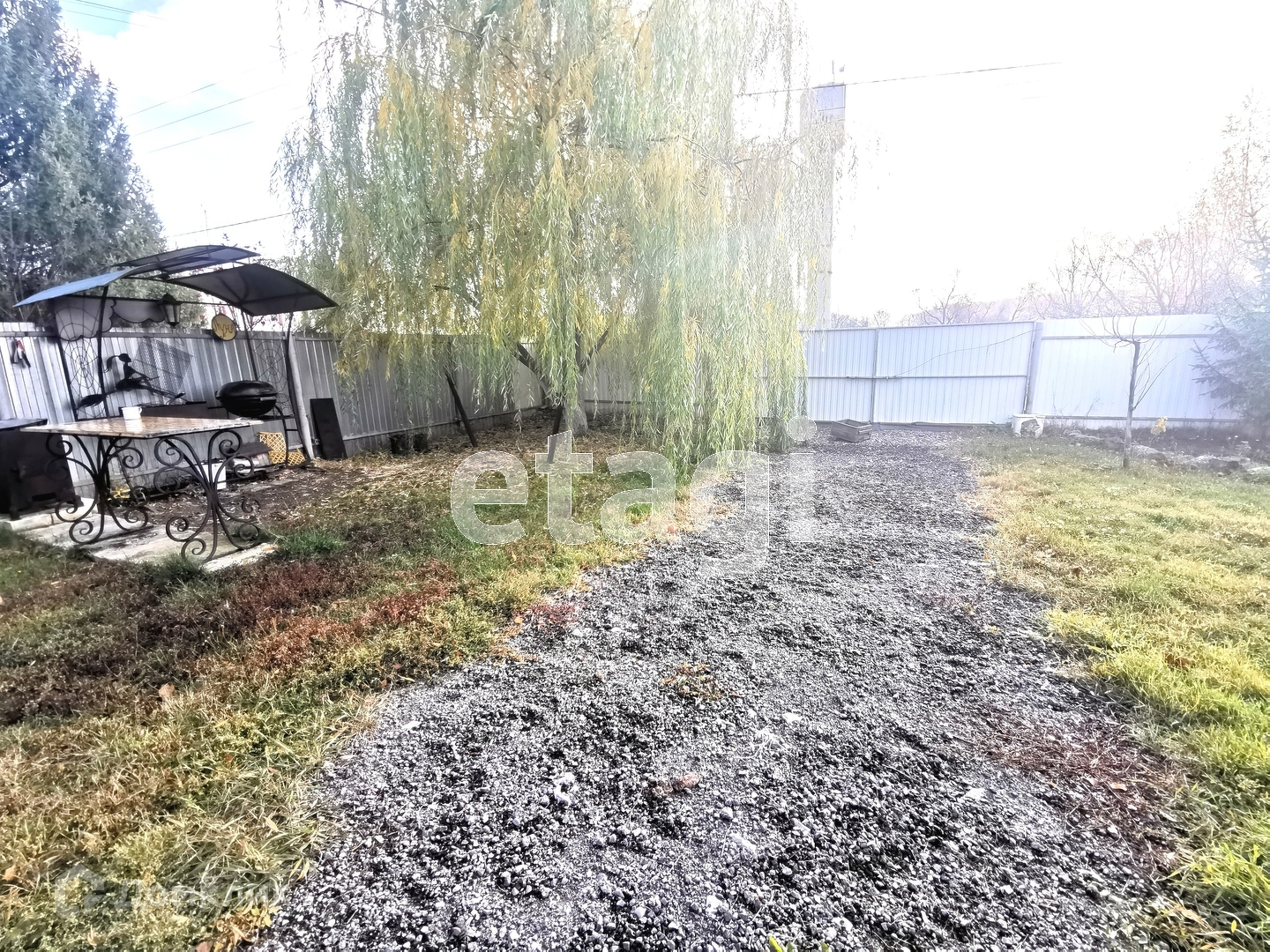 Вся территория огорожена профлистом.