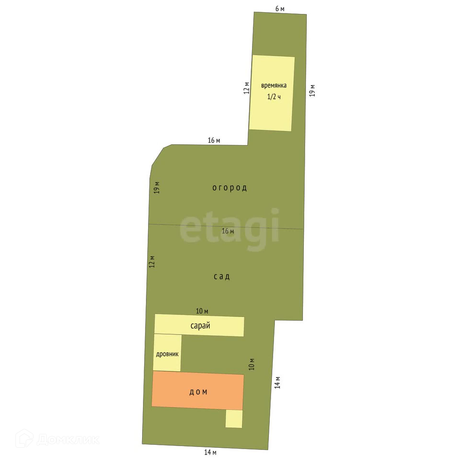 Участок обработан, за домом находится сад и огород.