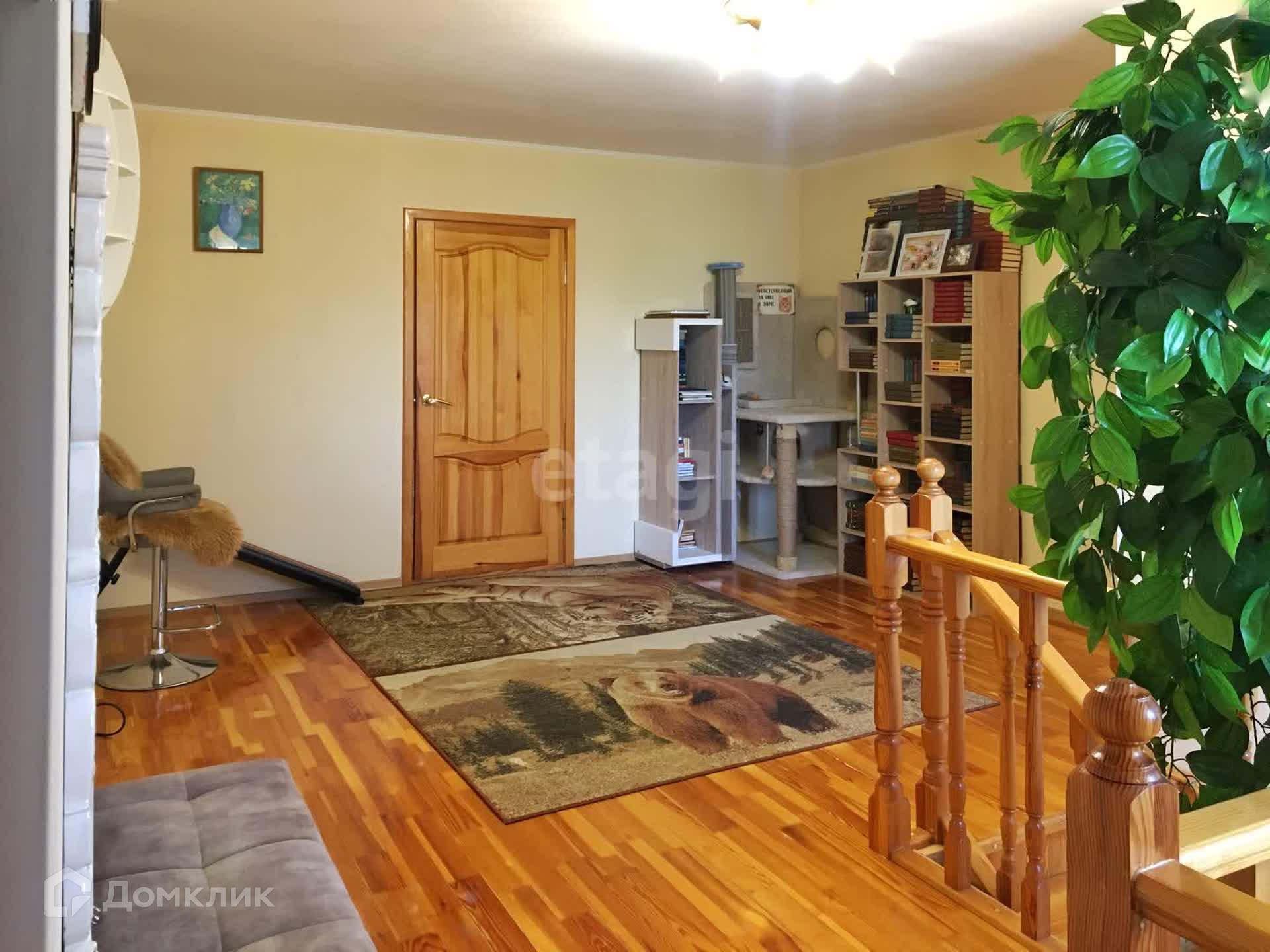 -полы, лестница и двери выполнены из натурального дерева