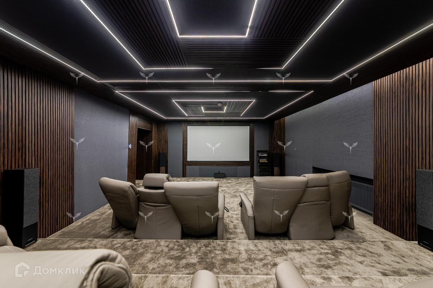 9) Домашний кинотеатр на 12 гостей, установлены кресла-реклайнеры с пультовым управлением,