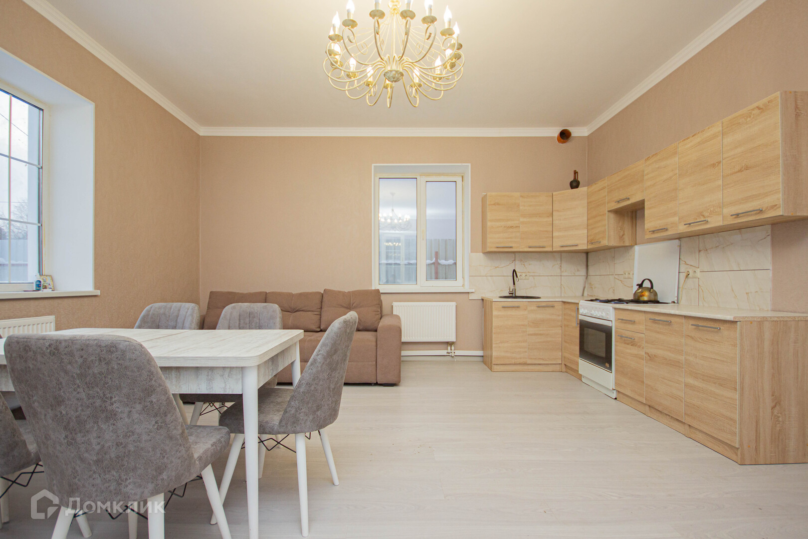 - Общая плoщадь дома: 150 кв. м.(оснoвной кирпичный дом 100м2 и гоcтевoй 50м2 )