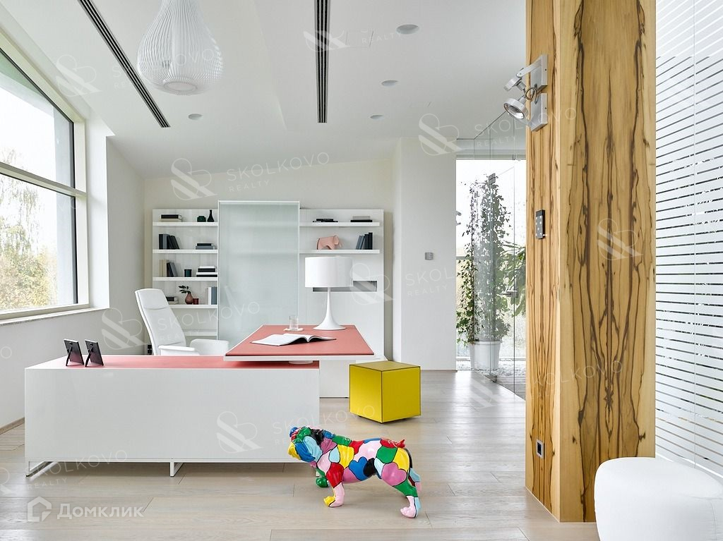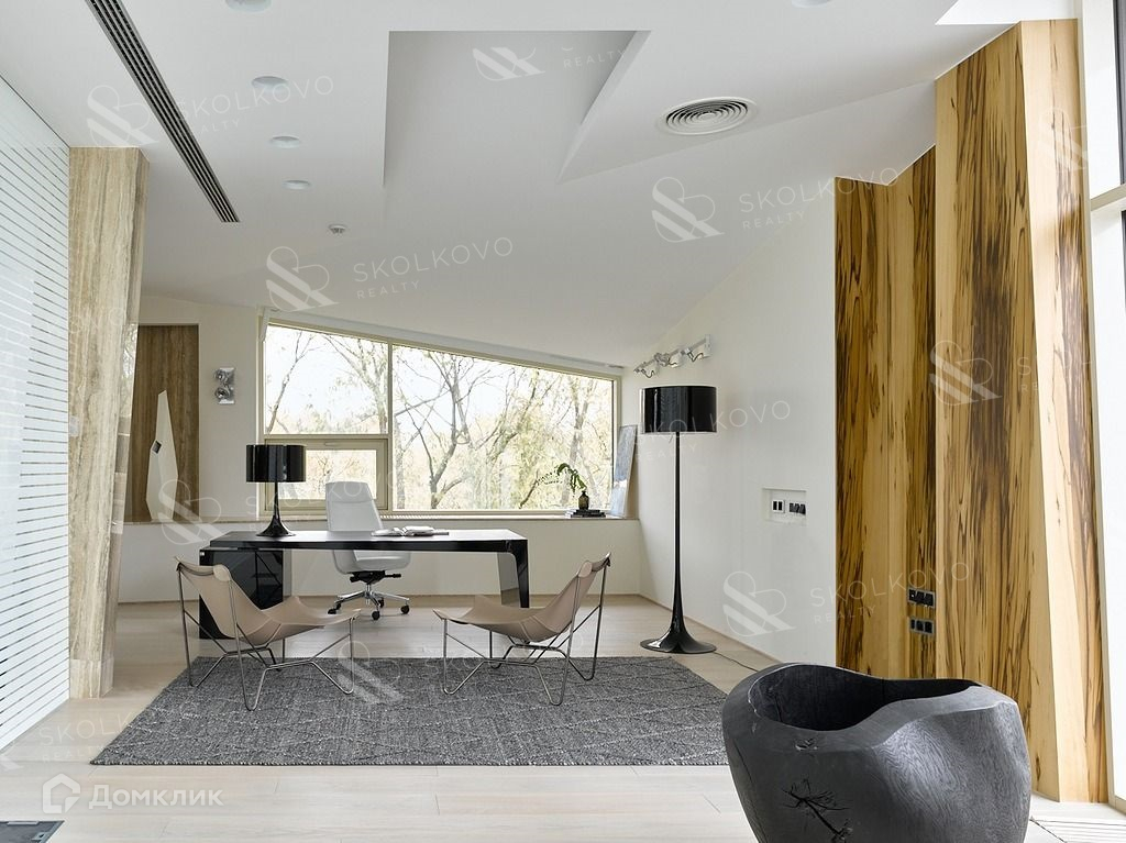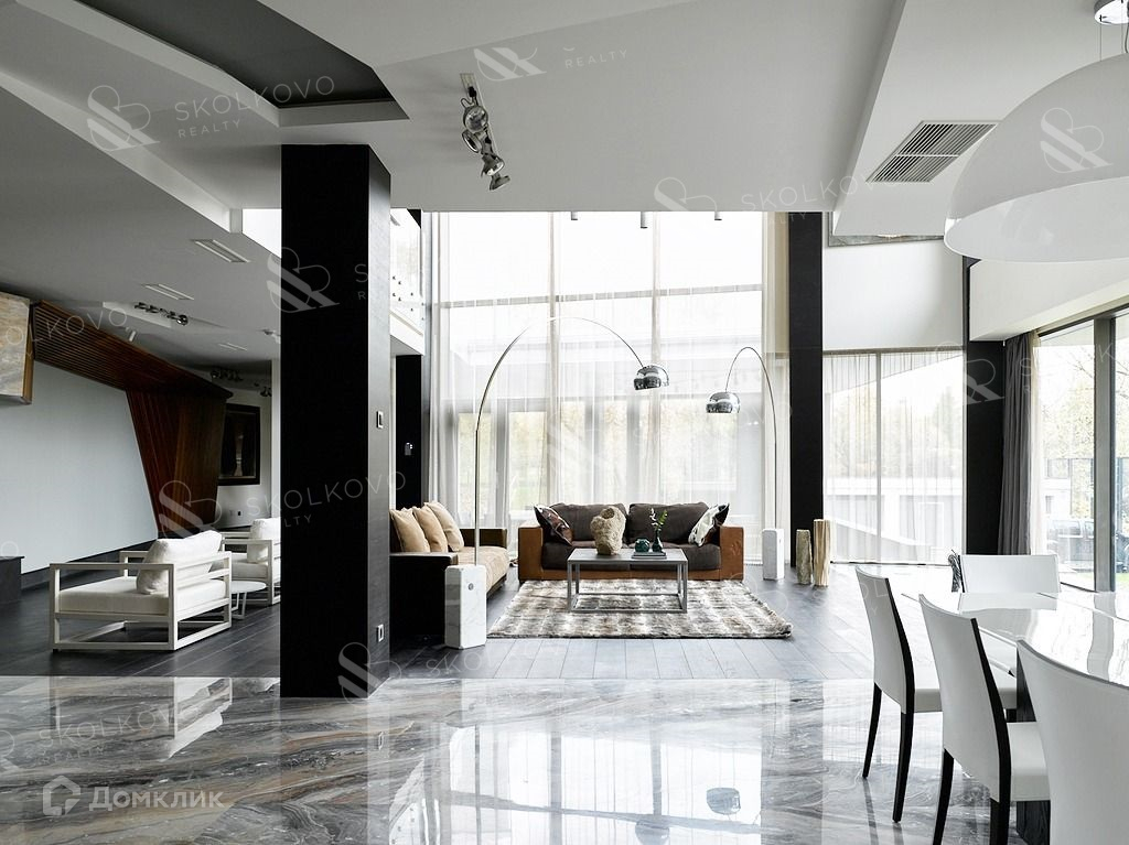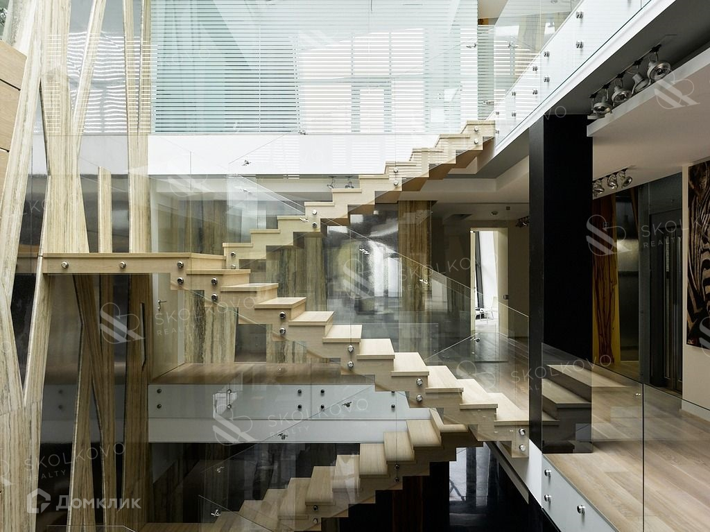 Четыре уровня дома позволят с комфортом разместиться большой семье. Восемь спален с санузлами, гардеробные, просторный зал-гостиная с камином, библиотека, два кабинета, зимний сад, игровая, тренажерный зал, кинозал, шубохранилище. Итальянский лифт, две кухни на разных этажах, прачечная, много подсобных помещений, отдельный вход и помещение для персонала.