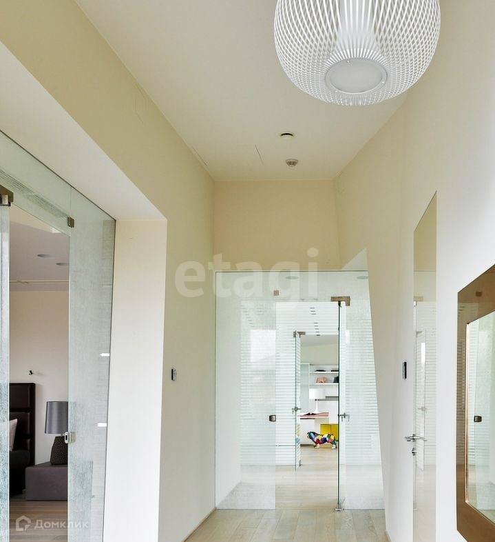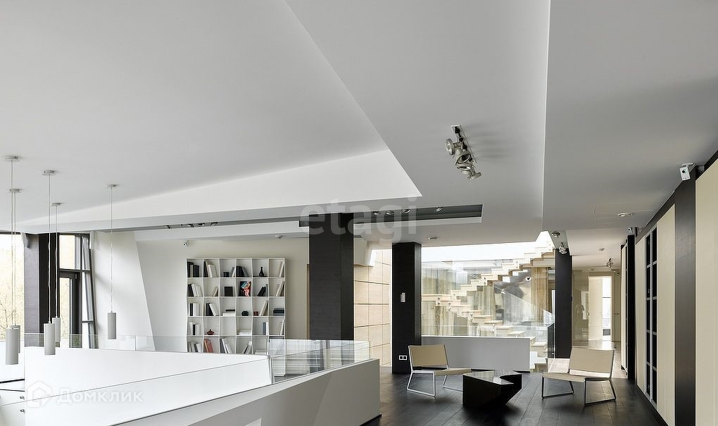 Четыре уровня дома позволят с комфортом разместиться большой семье. Восемь спален с санузлами, гардеробные, просторный зал-гостиная с камином, библиотека, два кабинета, зимний сад, игровая, тренажерный зал, кинозал, шубохранилище. Итальянский лифт, две кухни на разных этажах, прачечная, много подсобных помещений, отдельный вход и помещение для персонала.