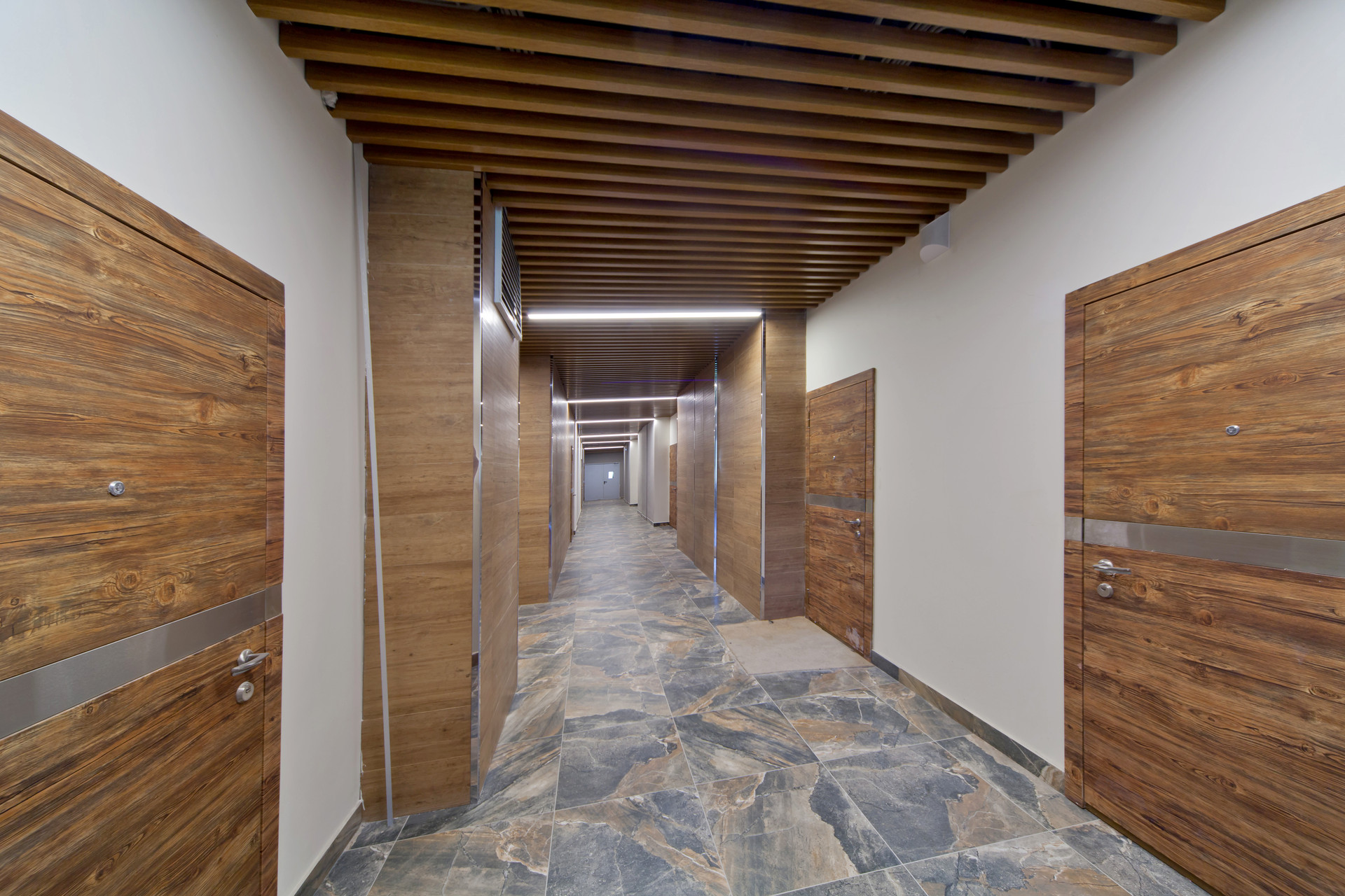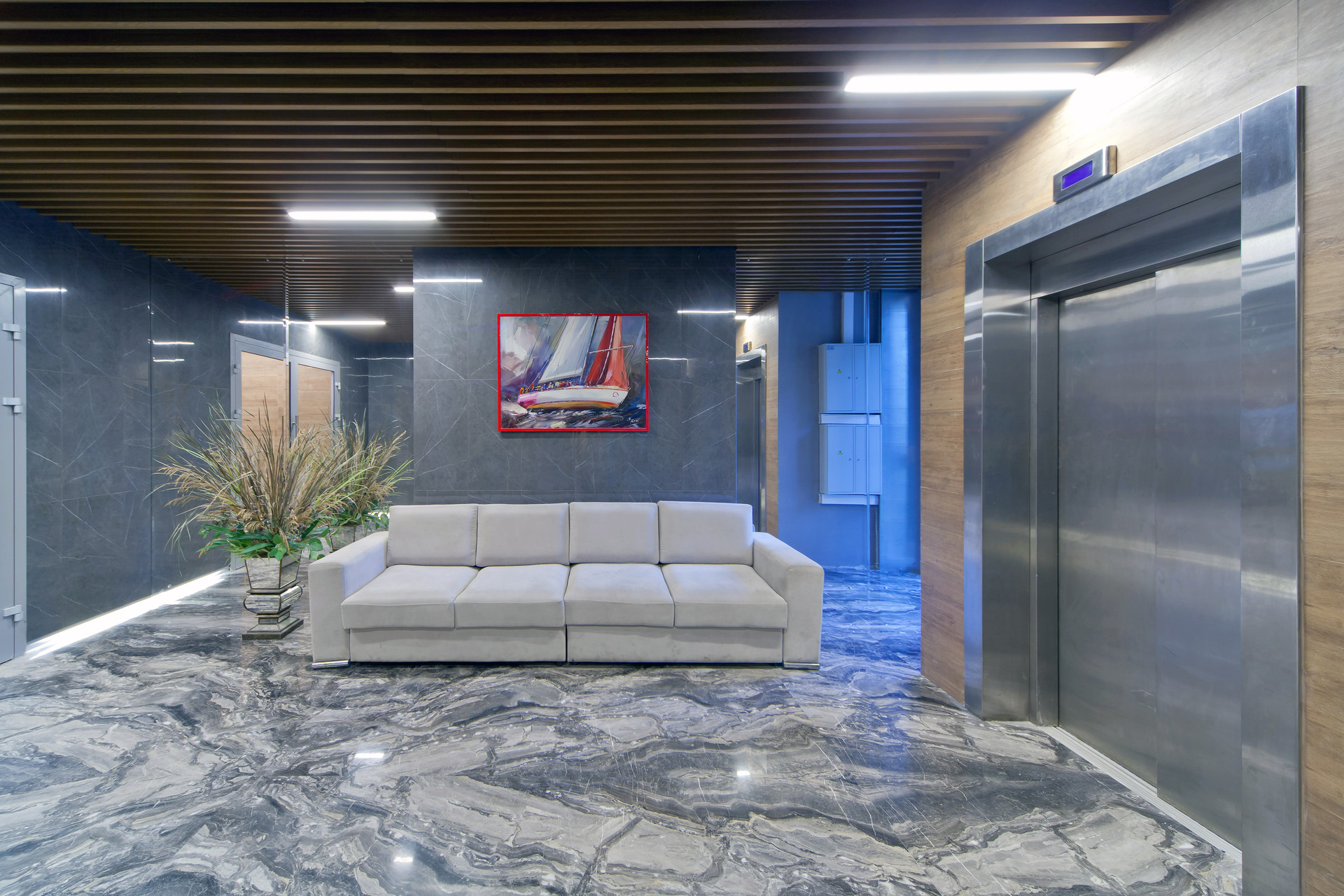 Инженерия дома оснащена функциональными инновационными системами центрального кондиционирования "Чиллер-фанкойл", вентиляции, электроснабжения, водоснабжения, отопления. Бесшумные крупногабаритные панорамные лифты.