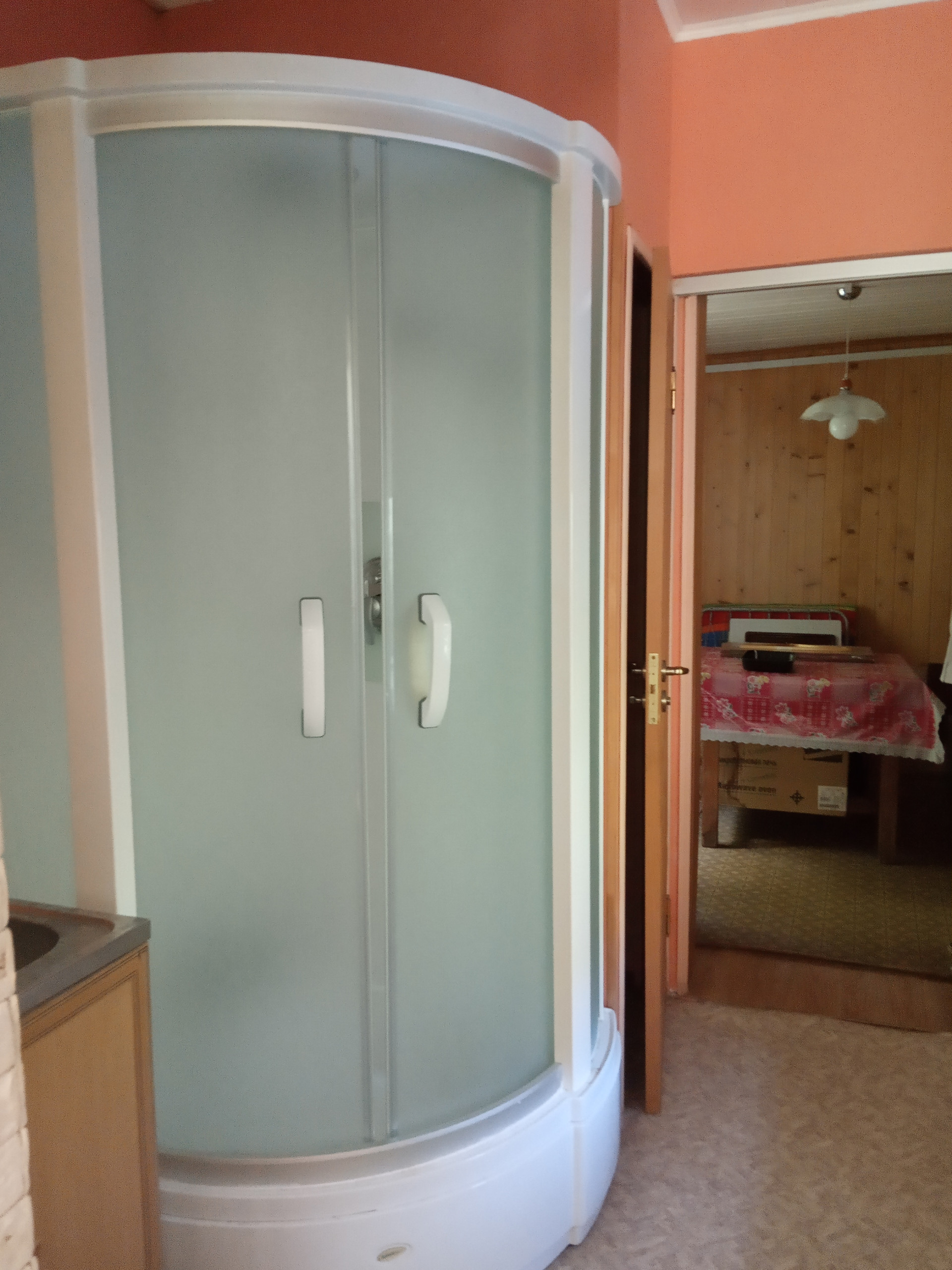 Второй вход позволяет войти во второе отдельное помещение дома, где расположены: вторая терраса, кухня, душевая, санузел, комната.