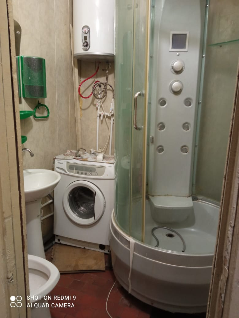 наследство от папы. очень тëплая, соседи хорошие, район тихий, на цокольном этаже продуктовый магазин. в кухне есть холодная кладовая, кухонный гарнитур, небольшой холодильник, обеденный стол, стулья. бойлер, стиральная машинка, WiFi