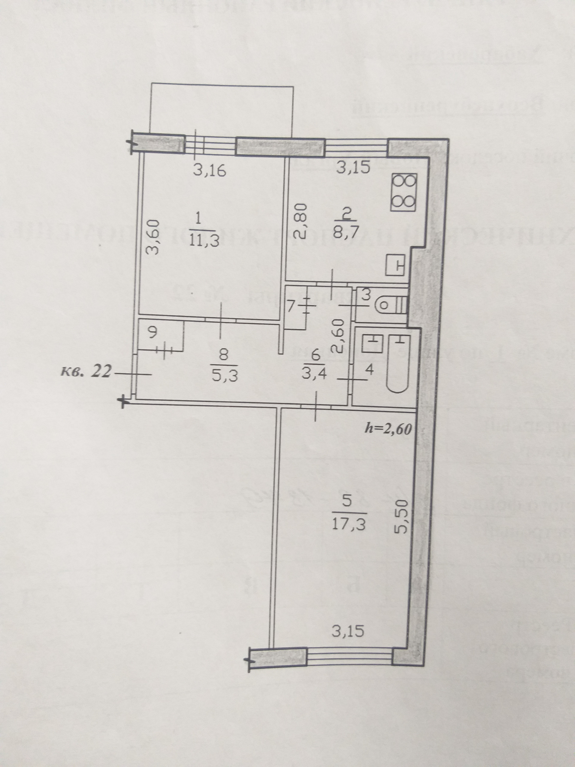 Высота потолков 2.6 м