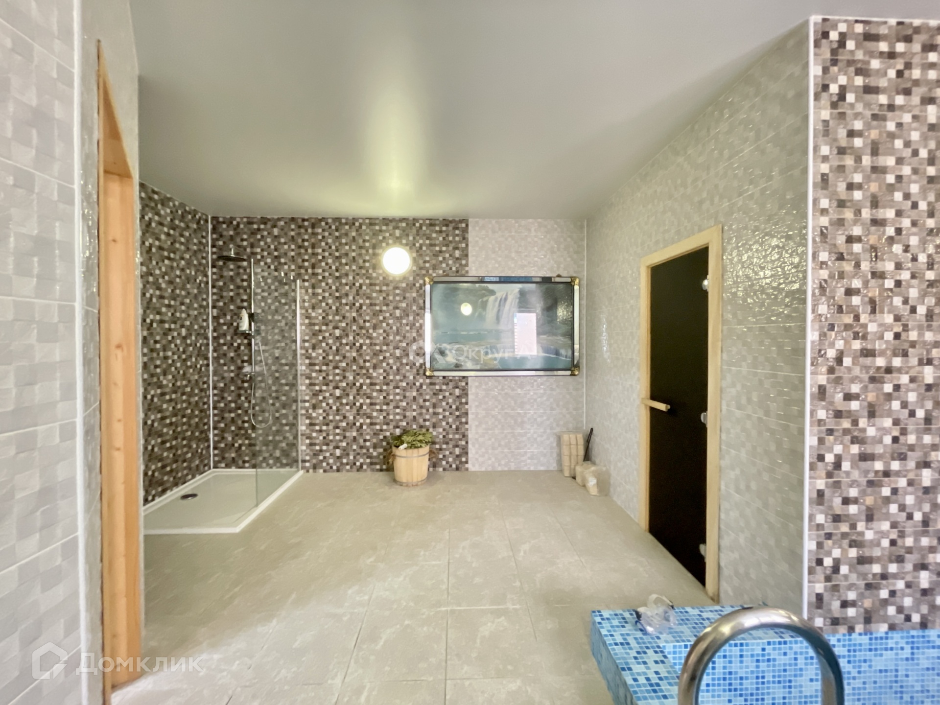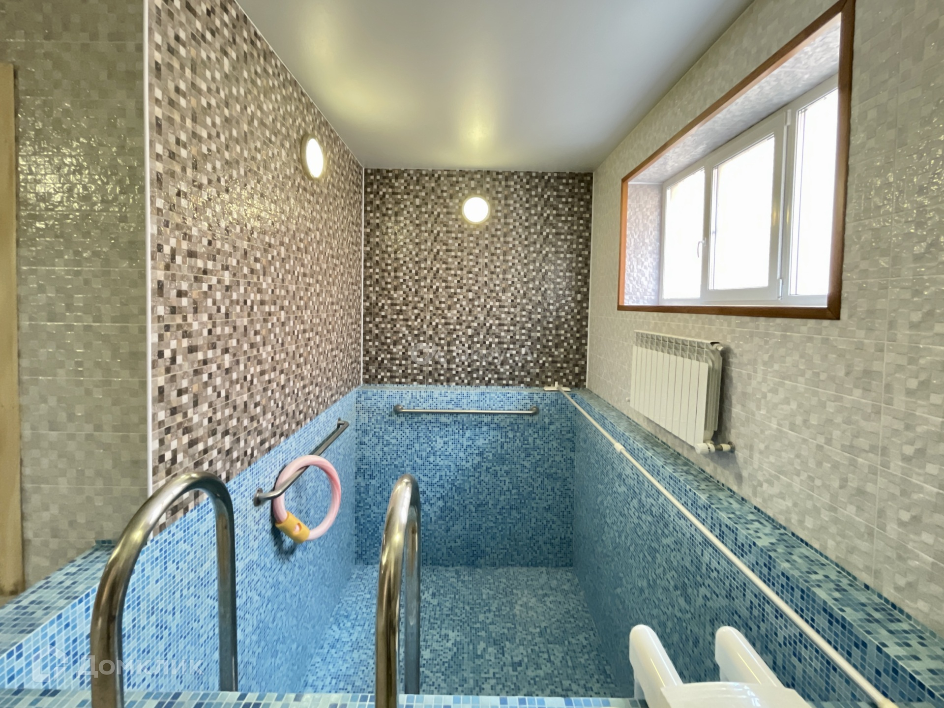 Вторым строением на участке является капитальная баня на ленточно-монолитном фундаменте, где расположены комната для отдыха, с/у, парная и бассейн глубиной 1,9м.