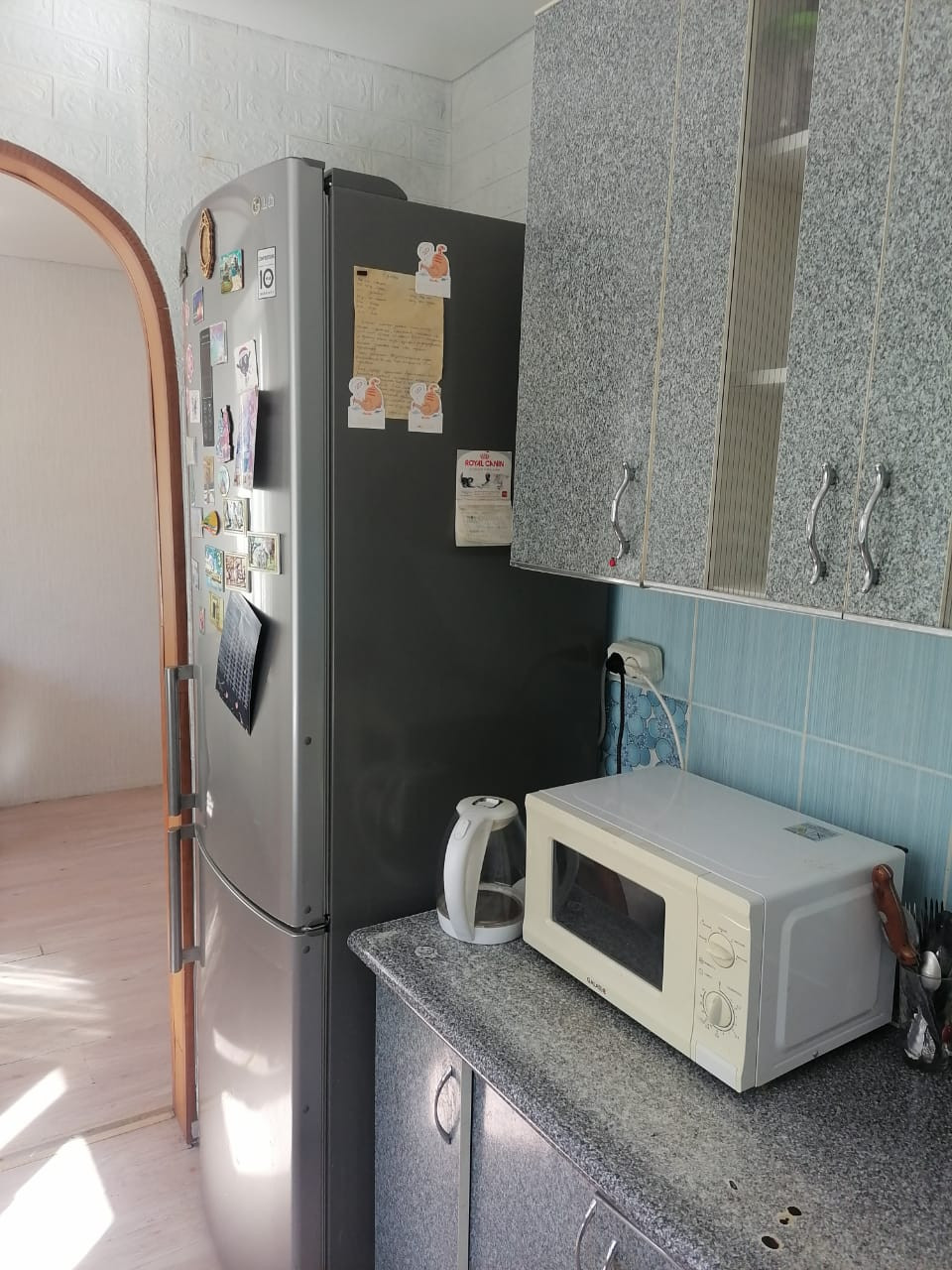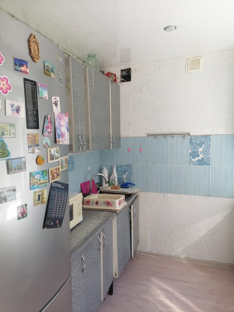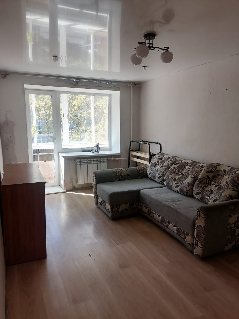В связи с переездом продается квартира. В прихожей и маленькой комнатке недавно переклеены обои. Потолок натянут во всей квартире в начале года.квартира теплая, окна выходят на обе стороны. Соседи хорошие.