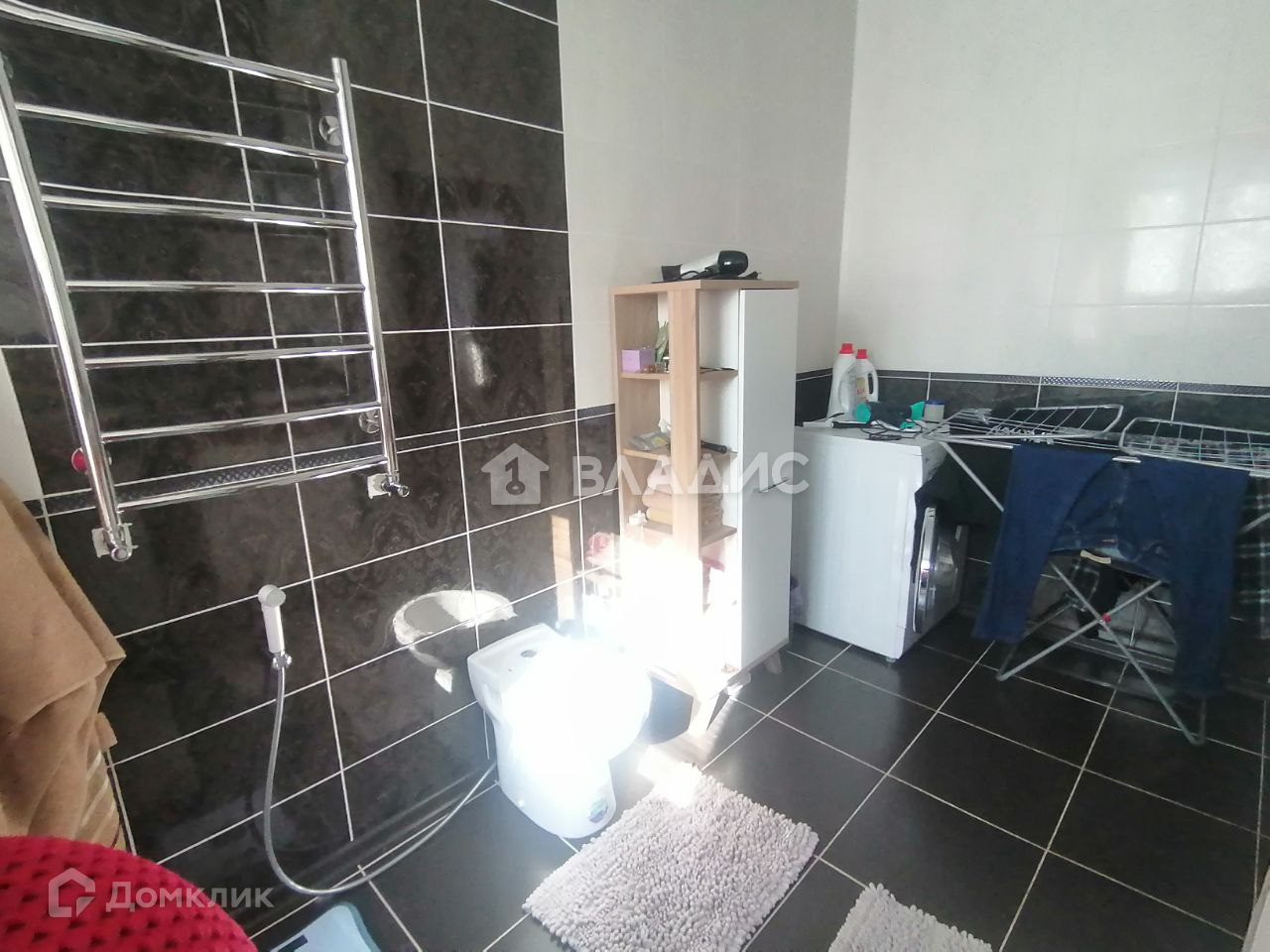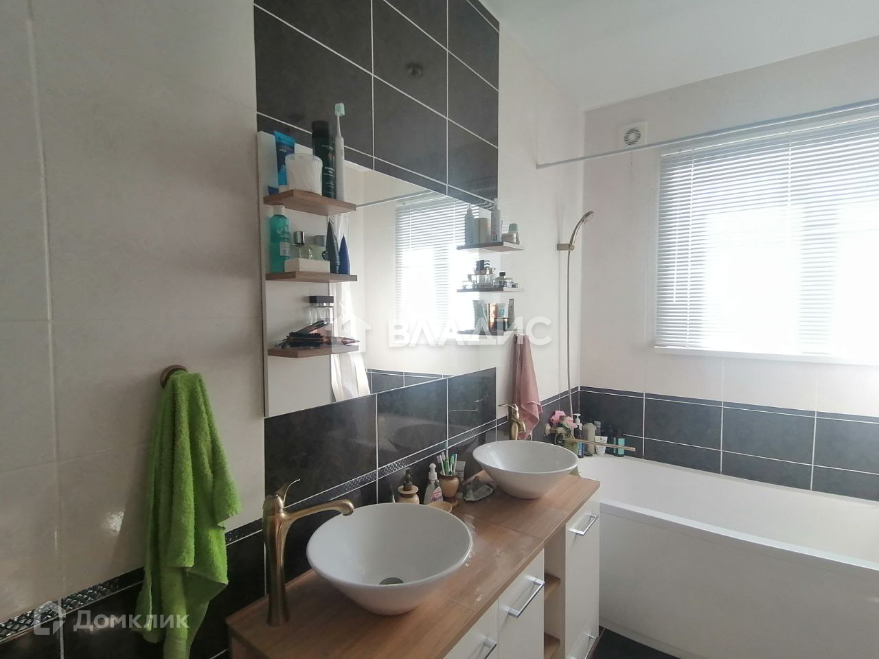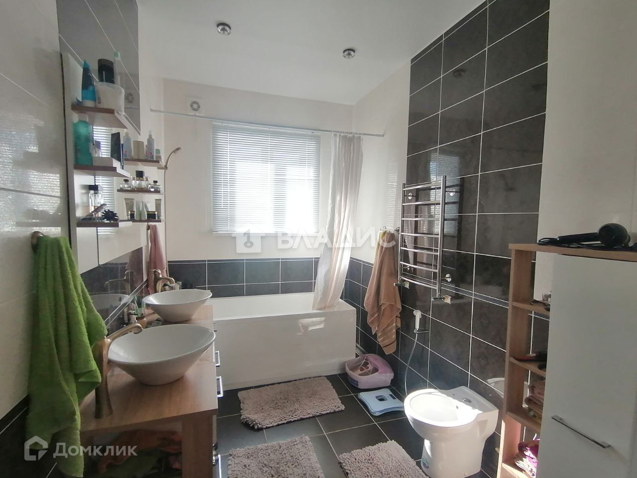 Санузел разделен, в кафеле. Ванная комната большая, установлены 2 отдельные раковины.