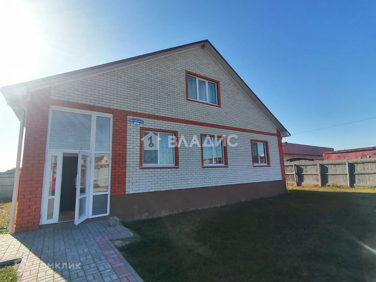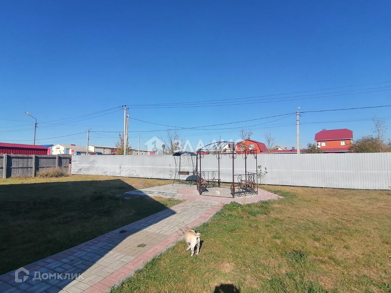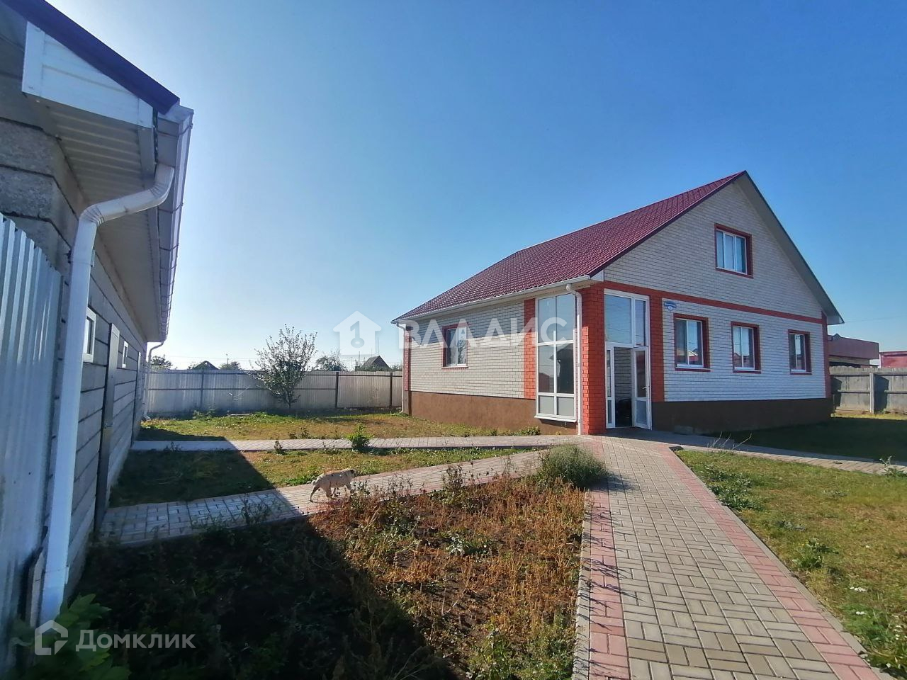 Дом расположен на участке 12 соток, участок ровный, плиткой проложены дорожки, есть гараж и помещение под баню, на участке размещена беседка и зона для шашлыка.