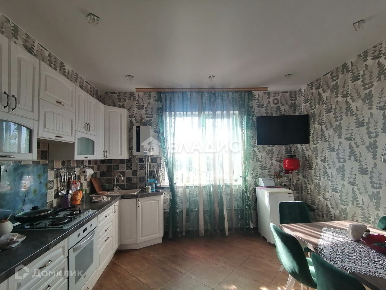 Просторная кухня 15 м2 где можно собраться всей семьей, на полу плитка, встроенный кухонный гарнитур, который остается новым хозяевам!