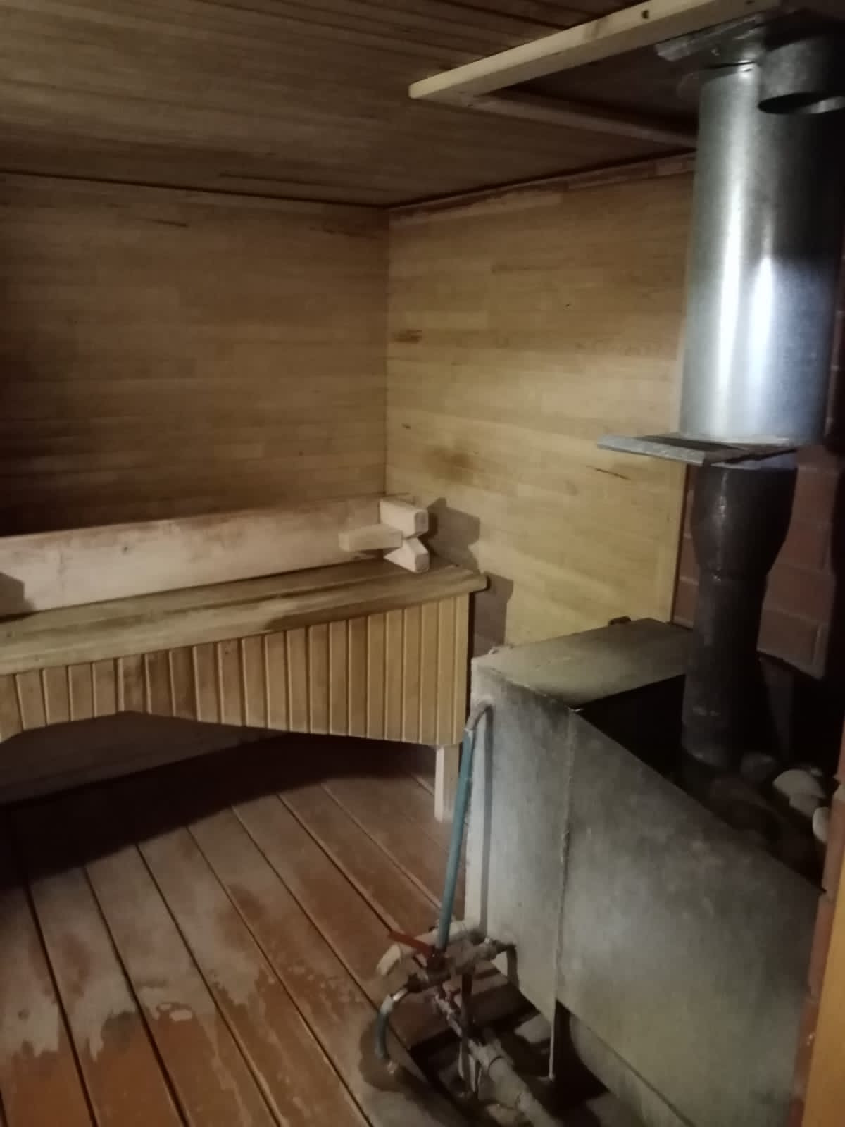 Одноэтажный каменный дом. Фундамент из железобетонных блоков, полнометражный подвал. Перекрытия железобетонные плиты, крыша профнастил. Обшит «сайдингом» с утеплителем. Из бани и кухни выход на просторную террасу. Баня и гараж с входом из дома. В гараже смотровая яма. В бане водопровод и канализация. На участке хозяйственная постройка - сарай со срубом; две теплицы; есть сад - яблони, сливы.