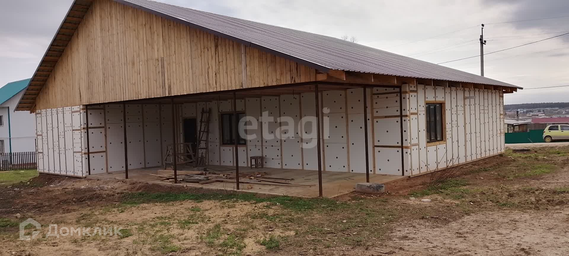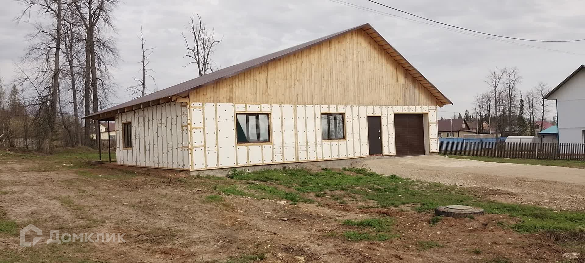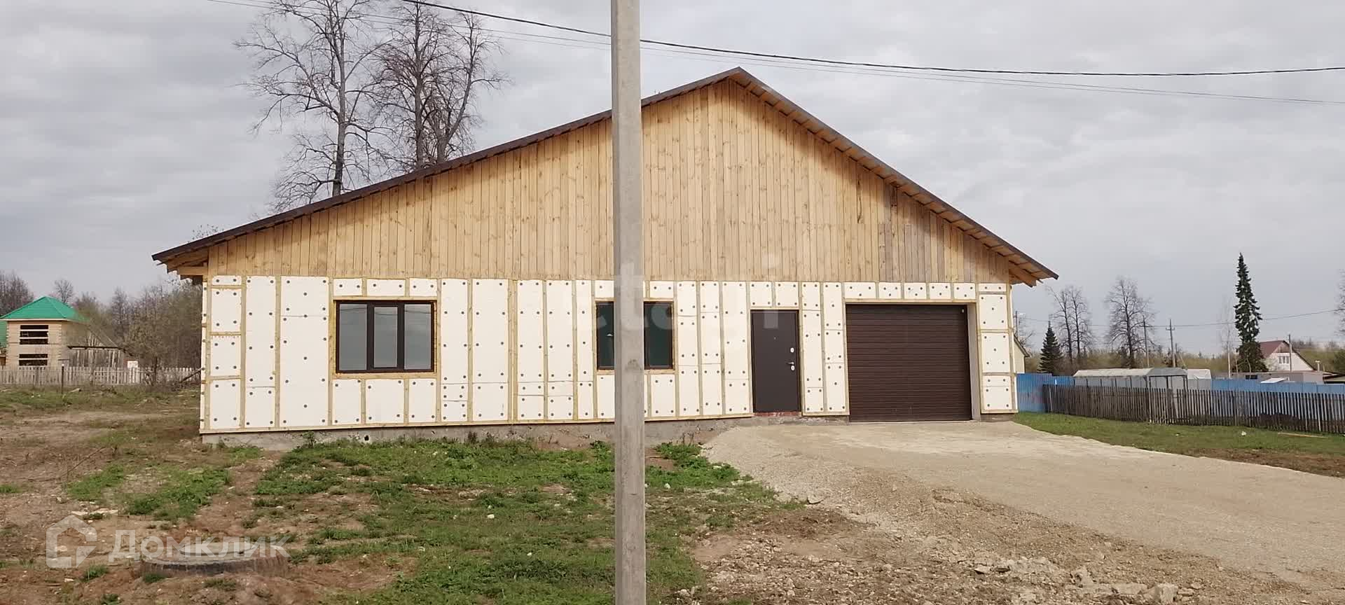 Дом построен из газоблока, есть подвальное помещение. Сделана обшивка сайдингом. Двор огорожен. Есть гараж, баня. Ворота гаража с электроприводом для удобства.