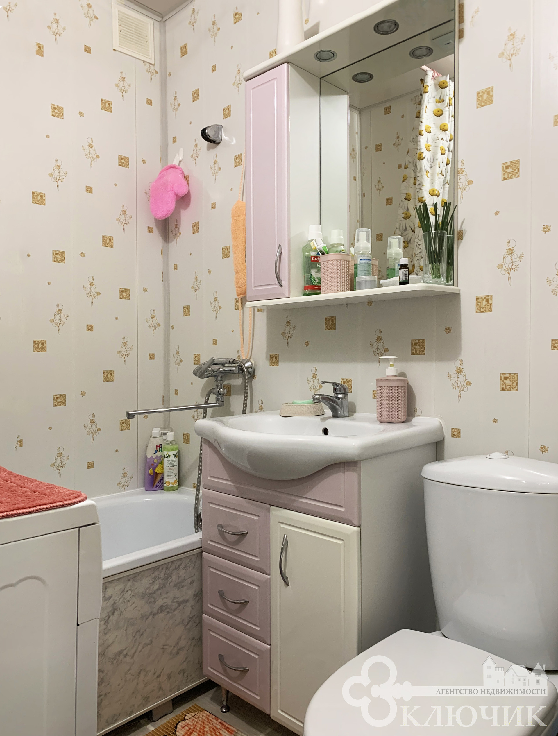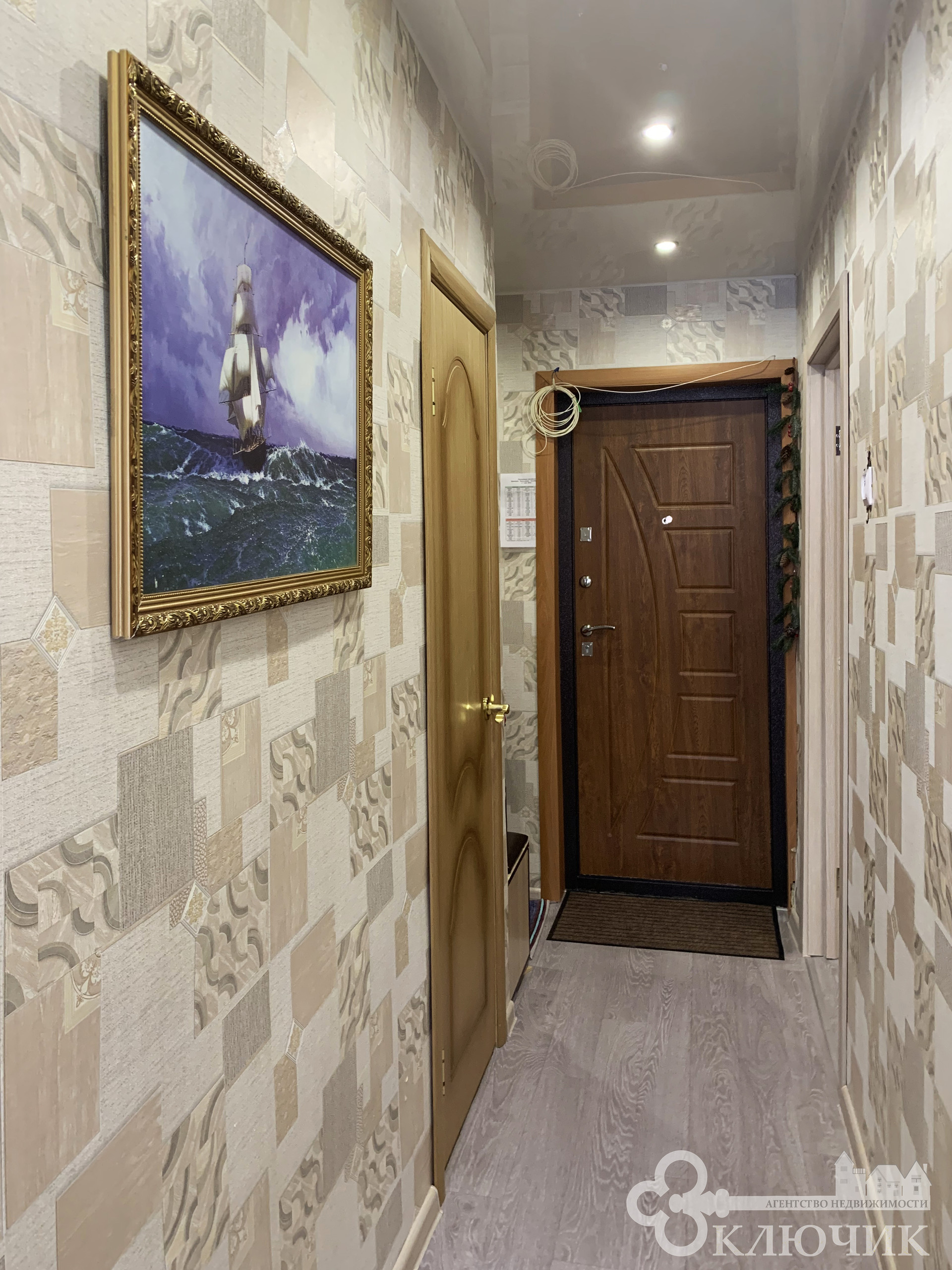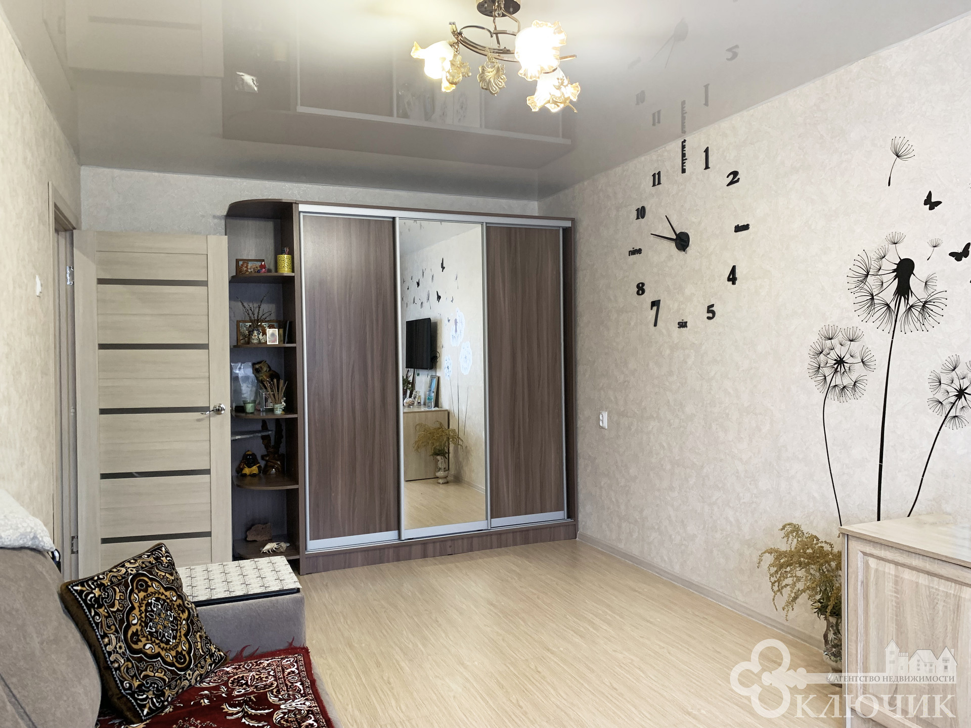 - потолок: в комнате, прихожей и кухне - натяжной, в с/у на стенах и потолке ПВХ панели