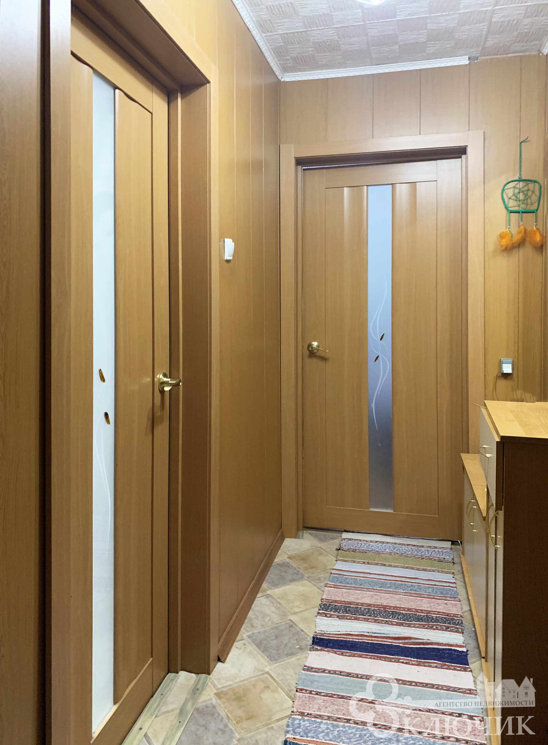 - в прихожей и ванной комнате на стенах ПВХ панели
