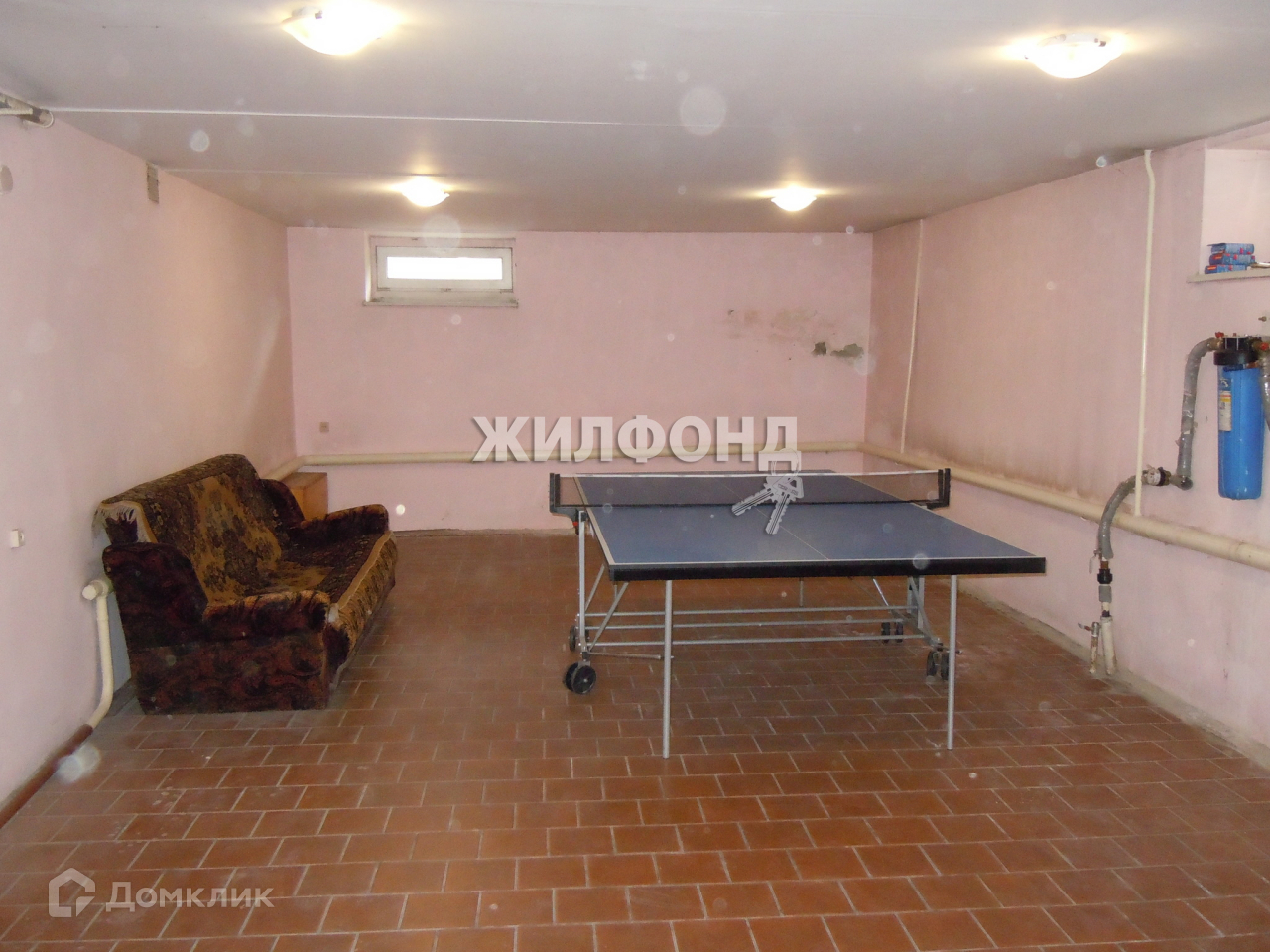 В подвальном помещение установлен теннисный стол.