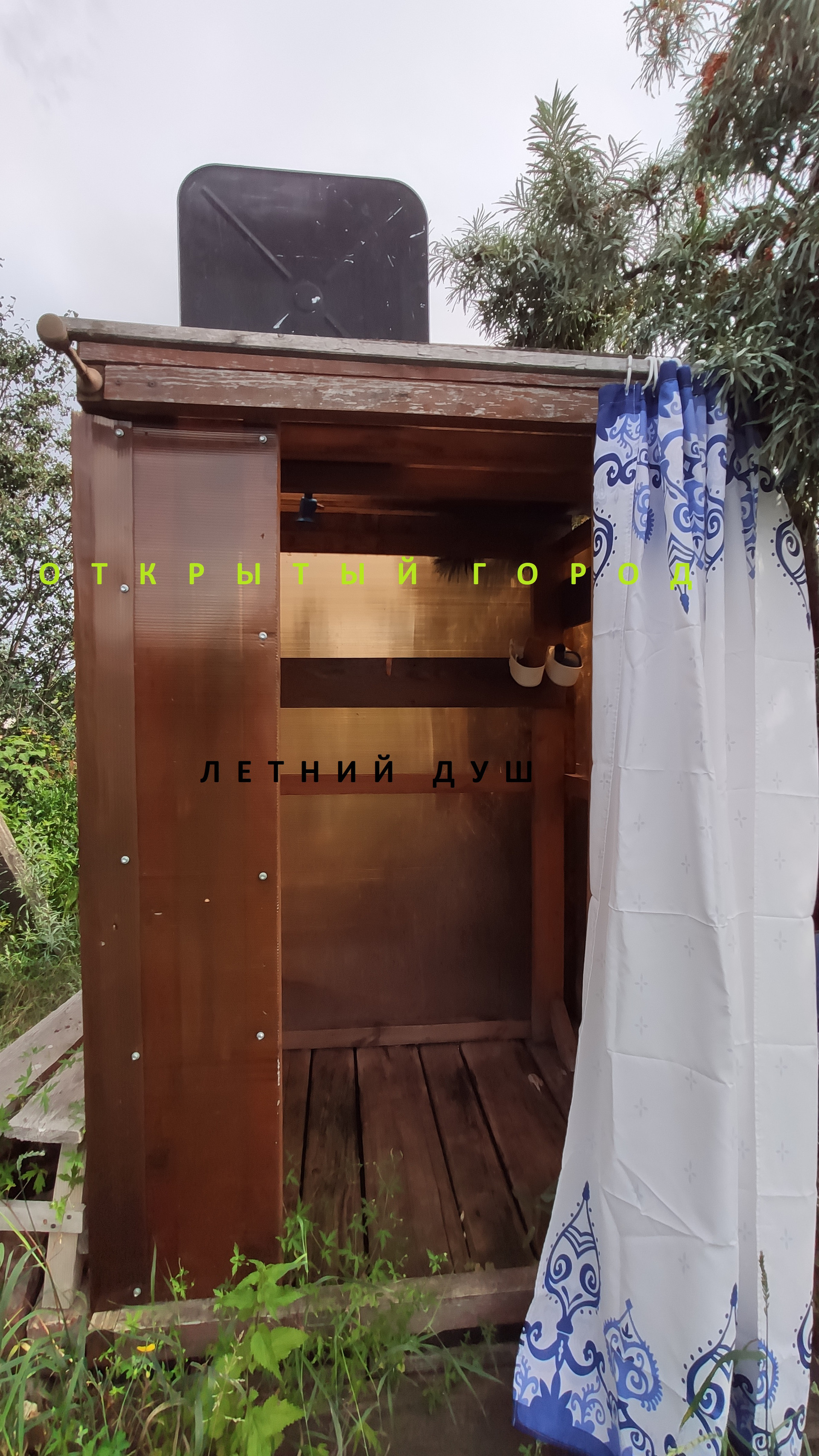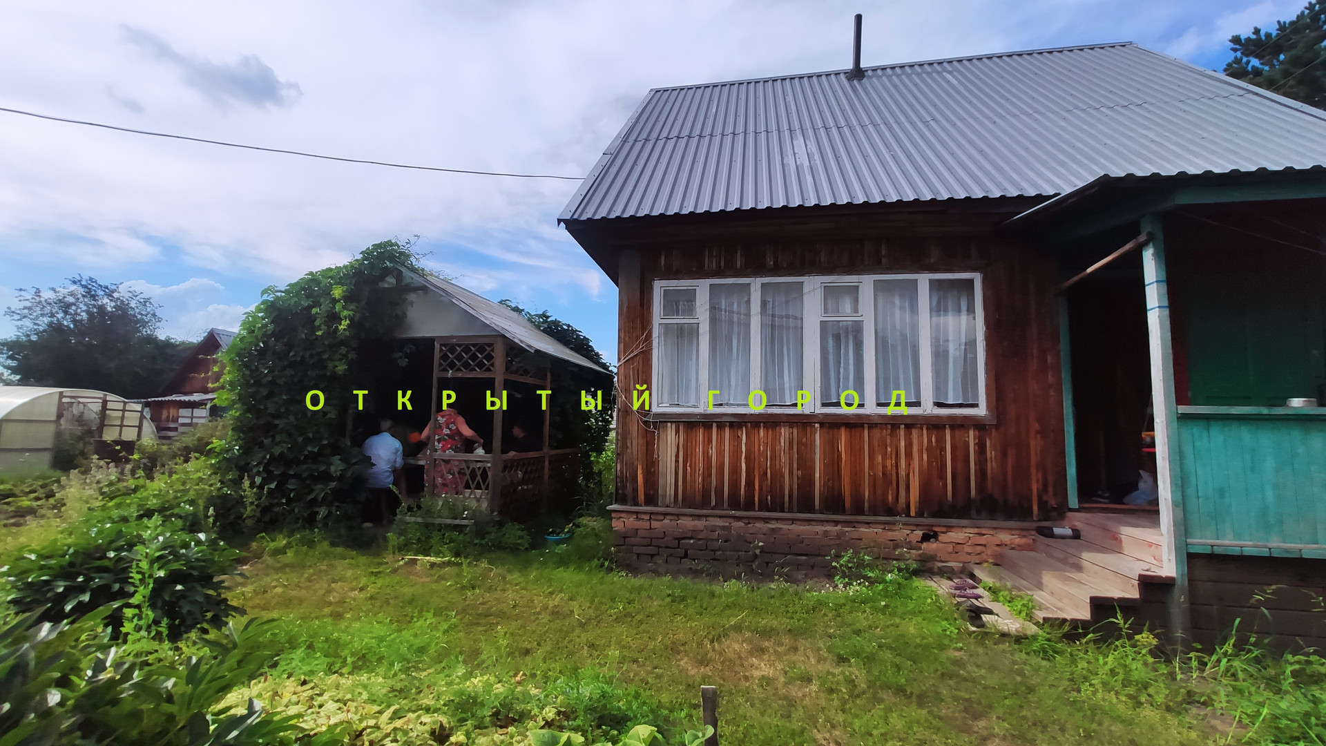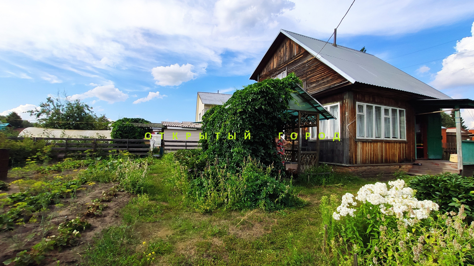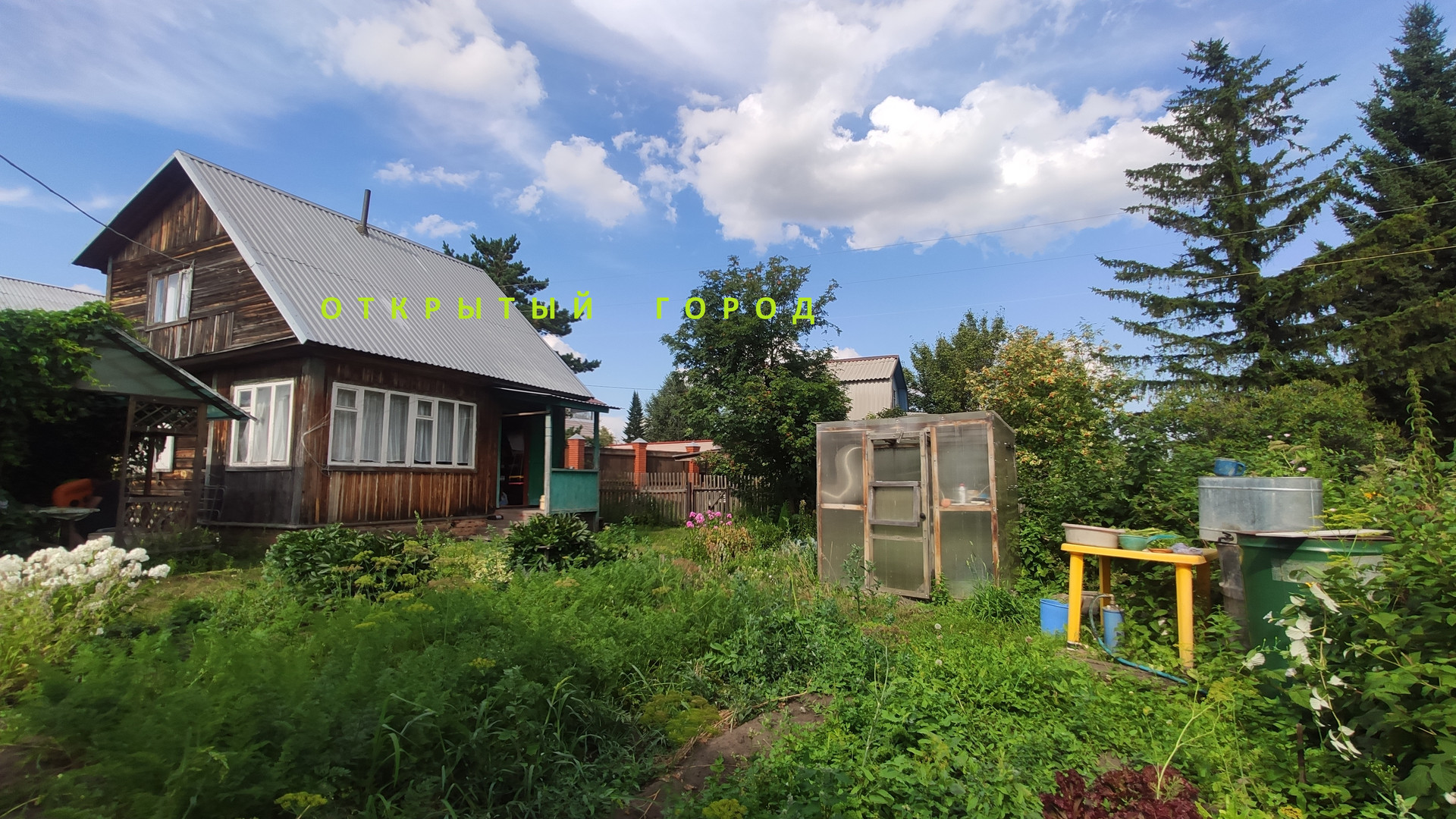 Баня. Летний душ. Две теплицы из сотового поликарбоната. Место для автомобиля . Погреб.