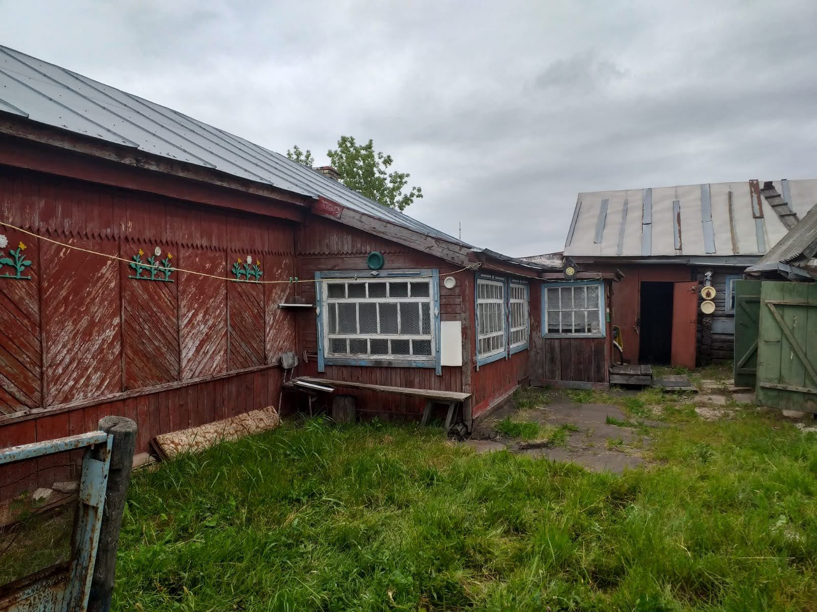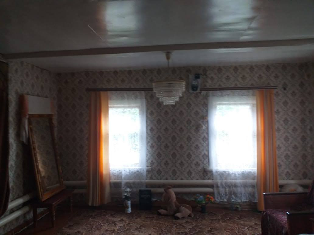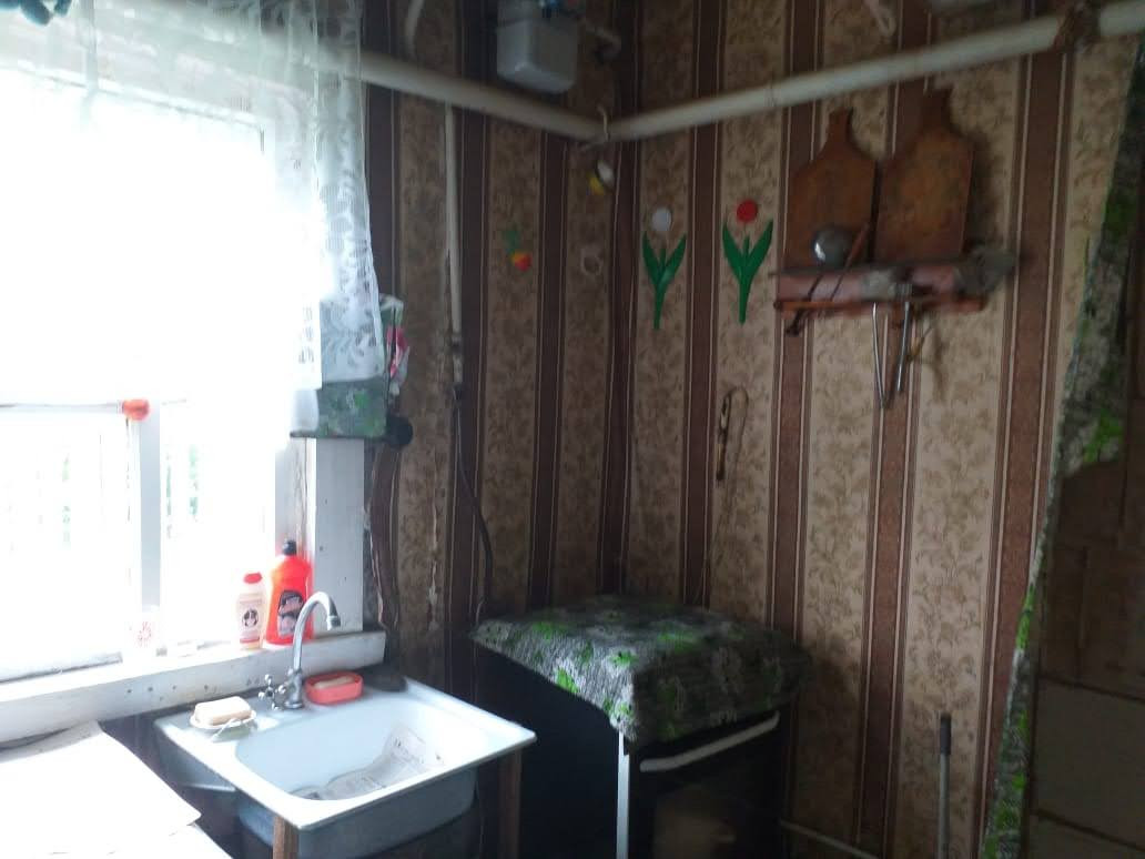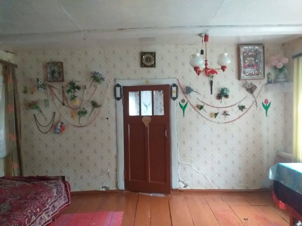Дом деревянный, на каменном фундаменте. Отопление газовое, в доме вода, туалет. Коридор, веранда, кухня, две комнаты. На участке хоз.постройки, гараж кирпичный, баня, плодовые деревья.