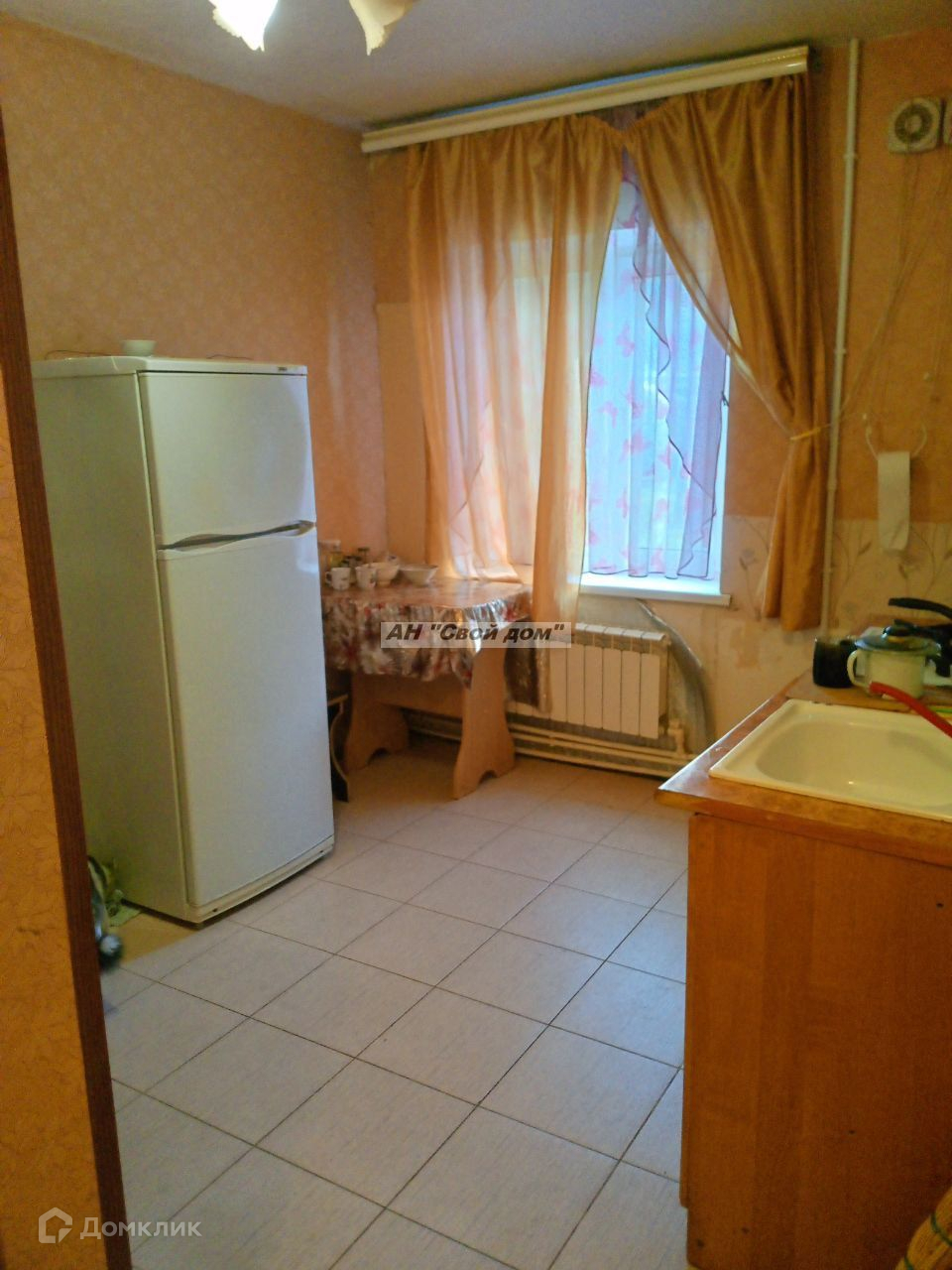 На кухне пол - плитка.