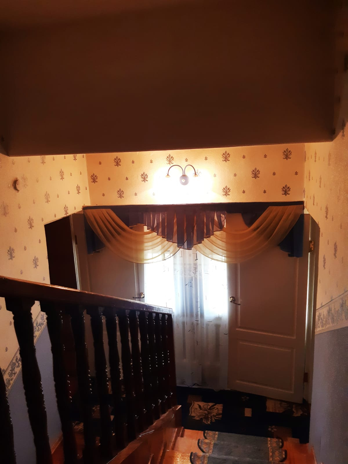Лестница удобная, широкая и качественная, изготовлена из ценных пород дерева: лиственницы и сосны