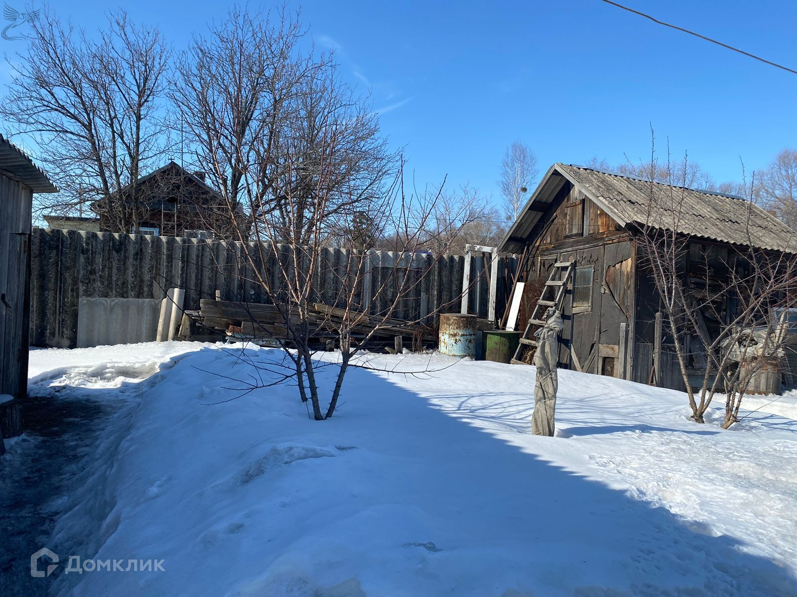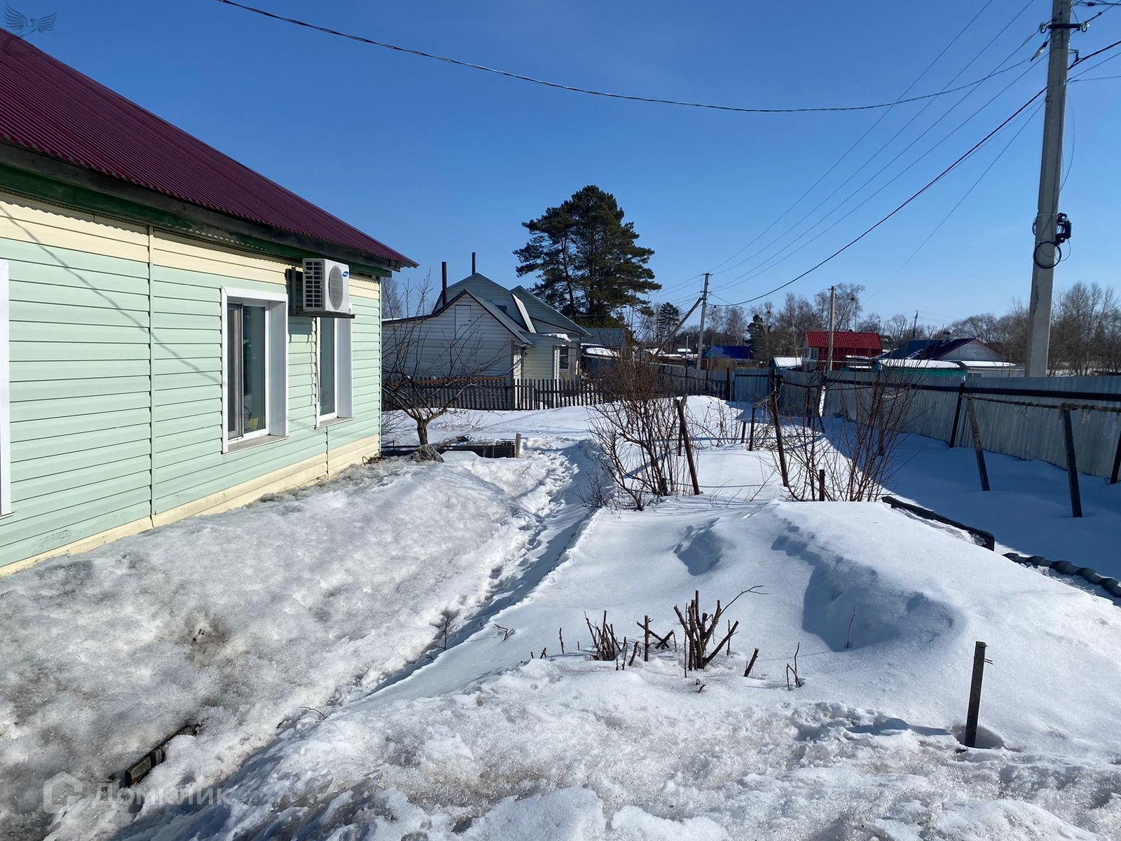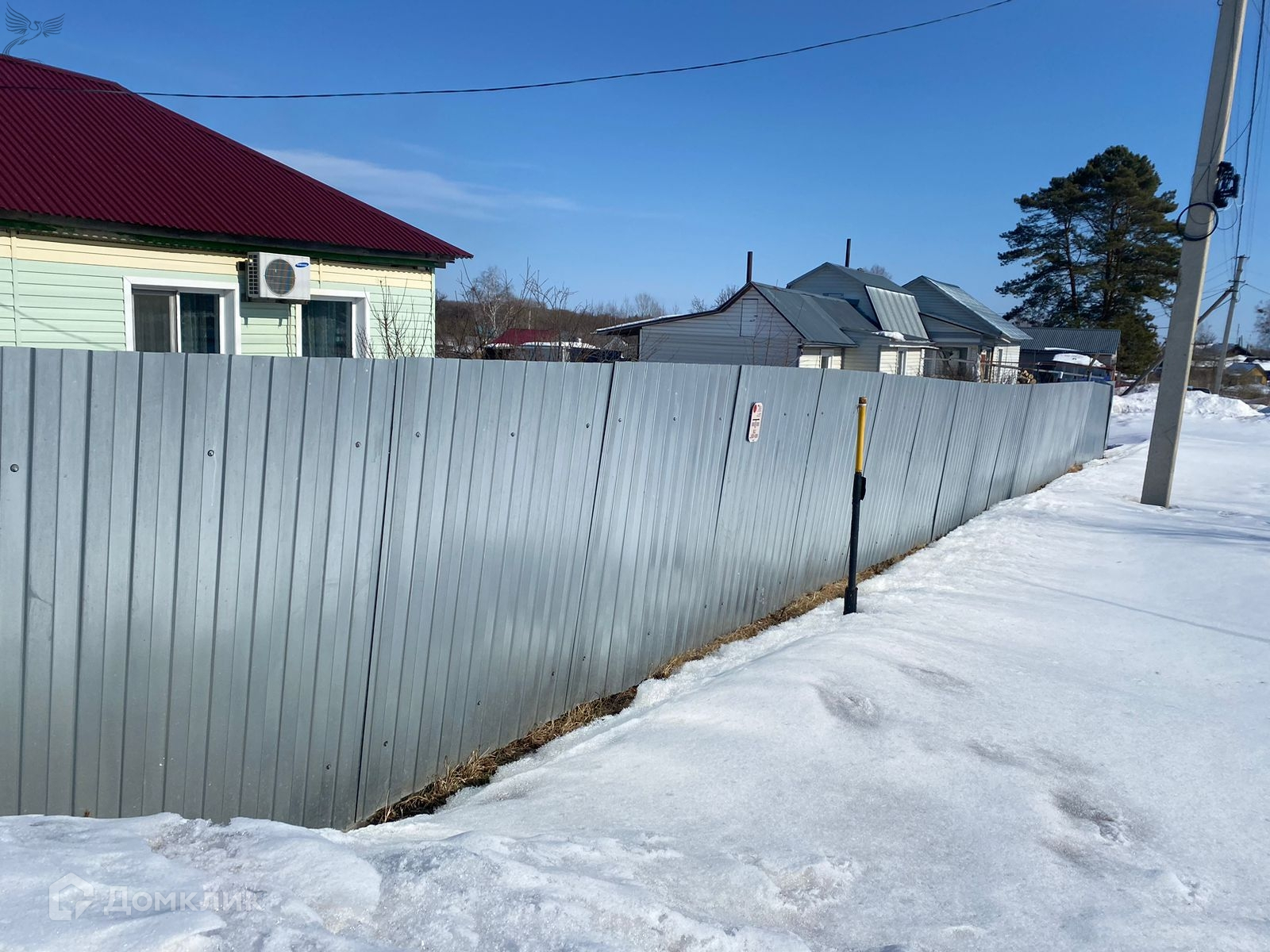 Дом обшит сайдингом, установлен хороший забор.