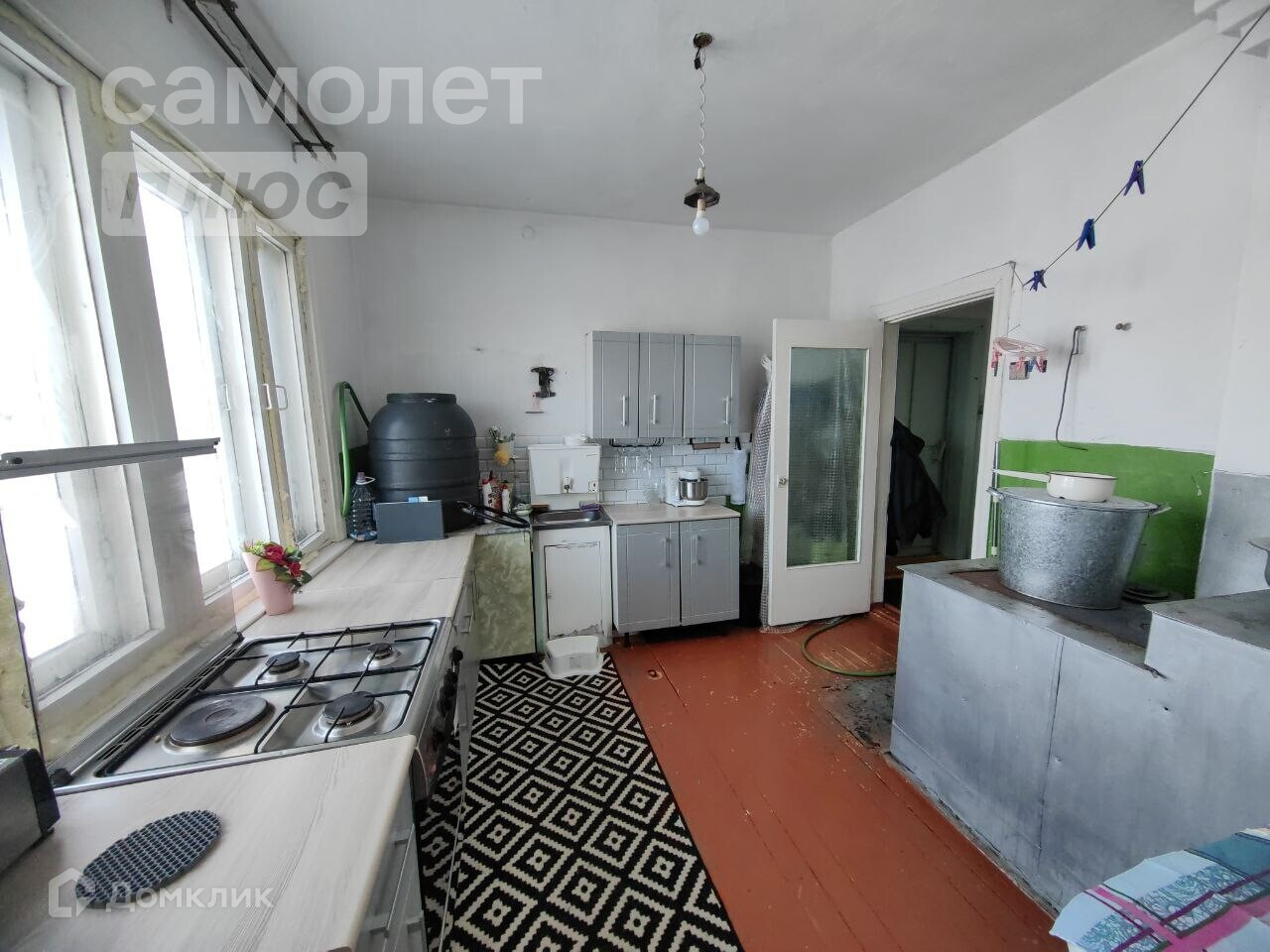 В доме 4 комнаты и большая кухня