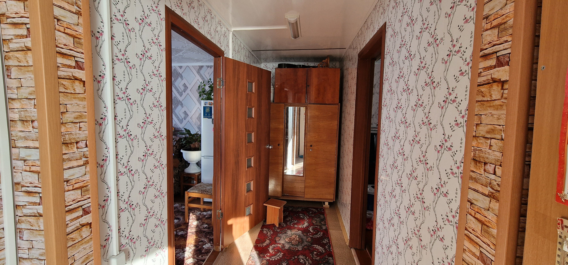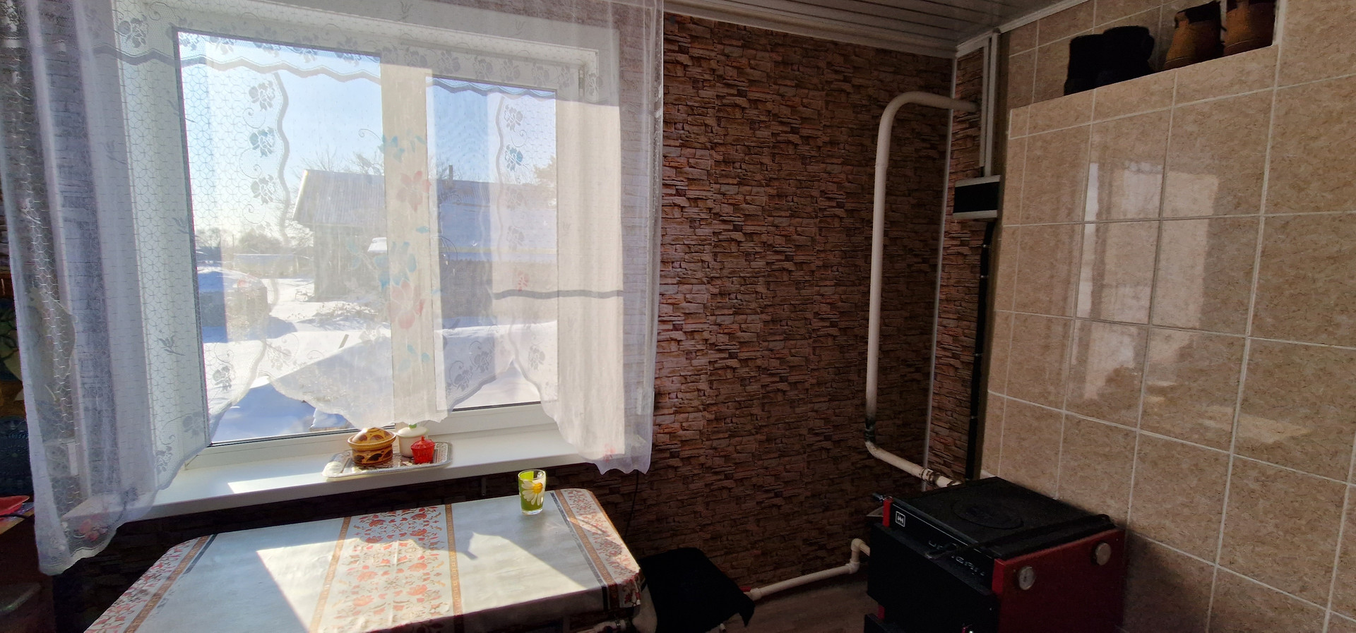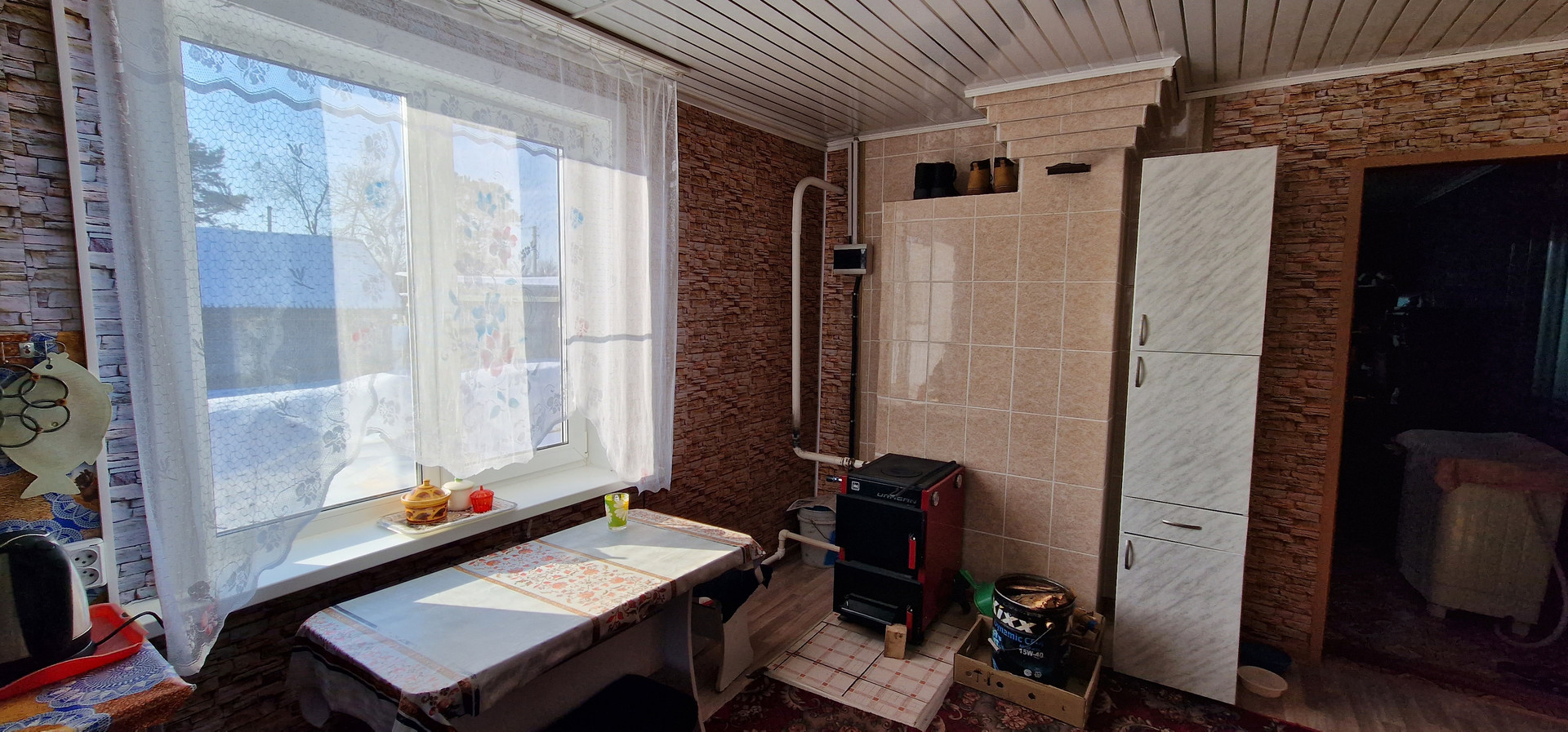 В двух квартирном доме трёх комнатная квартира. Все комнаты раздельные. Большая кухня с новым ремонтом (стены, потолок обделаны панелями) В квартире имеется 2 подполья, соединённых между собой. Все окна в квартире пластиковые. Отопление новое (пропиленовые трубы, алюминиевые радиаторы). Электрокатёл комбинированный (стоит 3 тэна по 2 кВ. Можно топить углем и дровами). Пенной щиток обделан кафелем с двух сторон. Ремонт сделан в 2019г. Ввод в квартиру трёхфазный (380в). Внутри квартиры электропроводка переделана на новую. Тариф на электроэнергию переделан на сельский тариф. Счётчик расположен с уличной стороны квартиры. Тариф день/ночь.