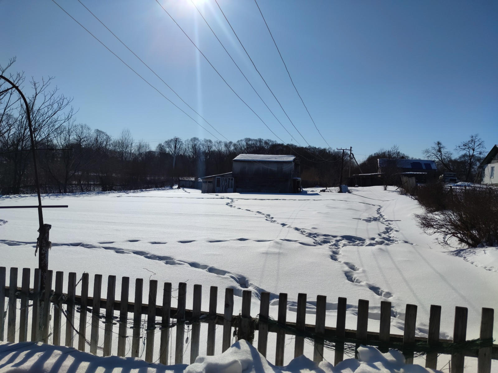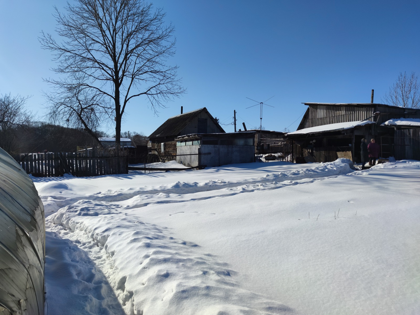 На зем участке есть постройки ( дом с печным отоплением, летний душ, 2 гаража, омшаник, сарай, дровенник ). В собственности.
