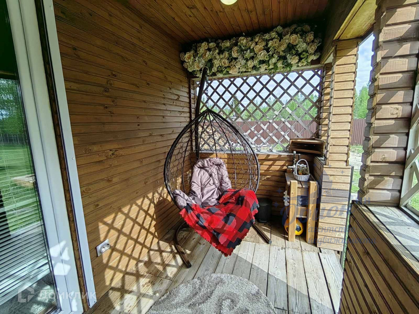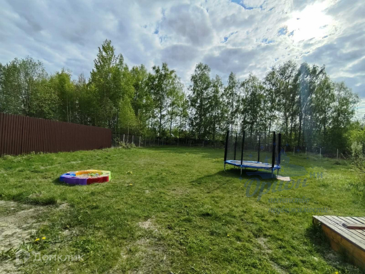 На участке батут, детская песочница, построен хоз.блок ( освещение проведено). На веранде так же проведен свет.