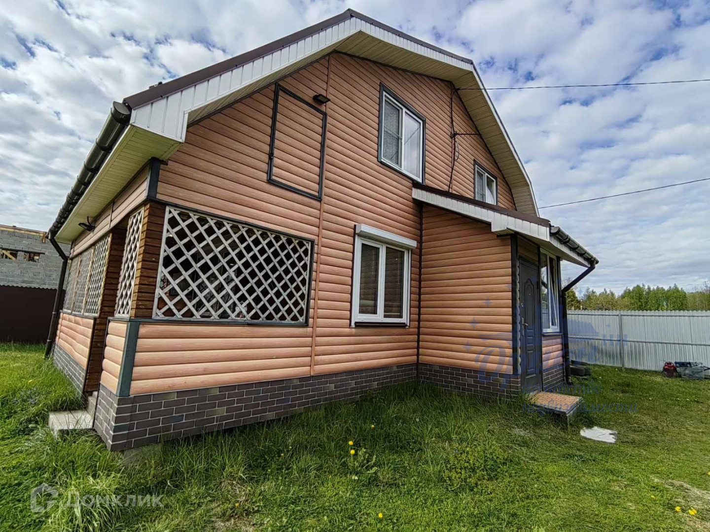 Одна часть дома - кирпич, вторая - каркасник. Крыша металлочерепица, своя скважина, септик.