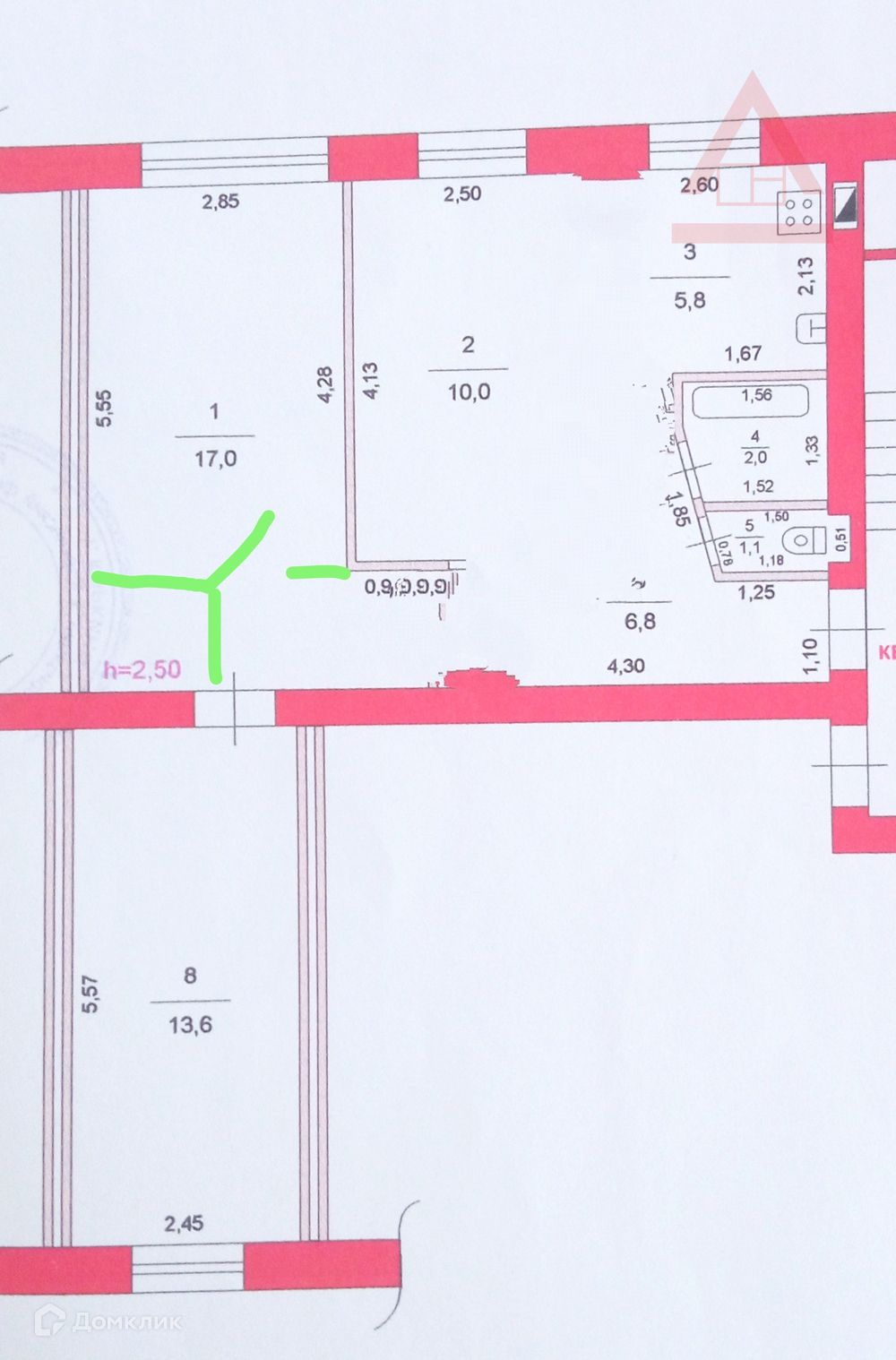 Высота потолков 2.5 м