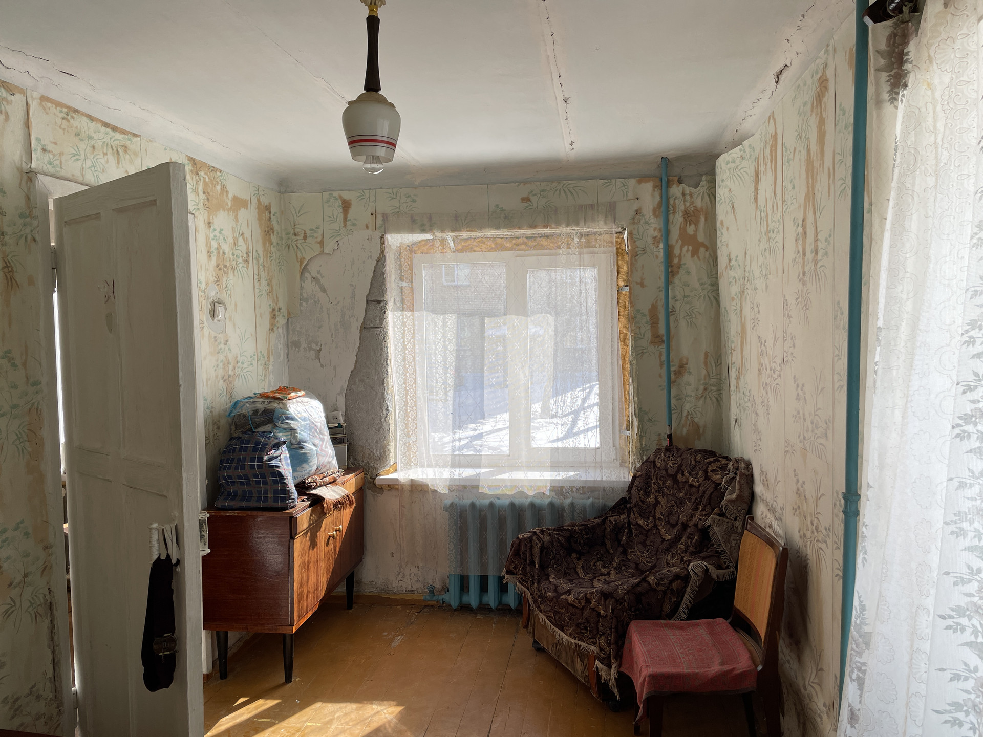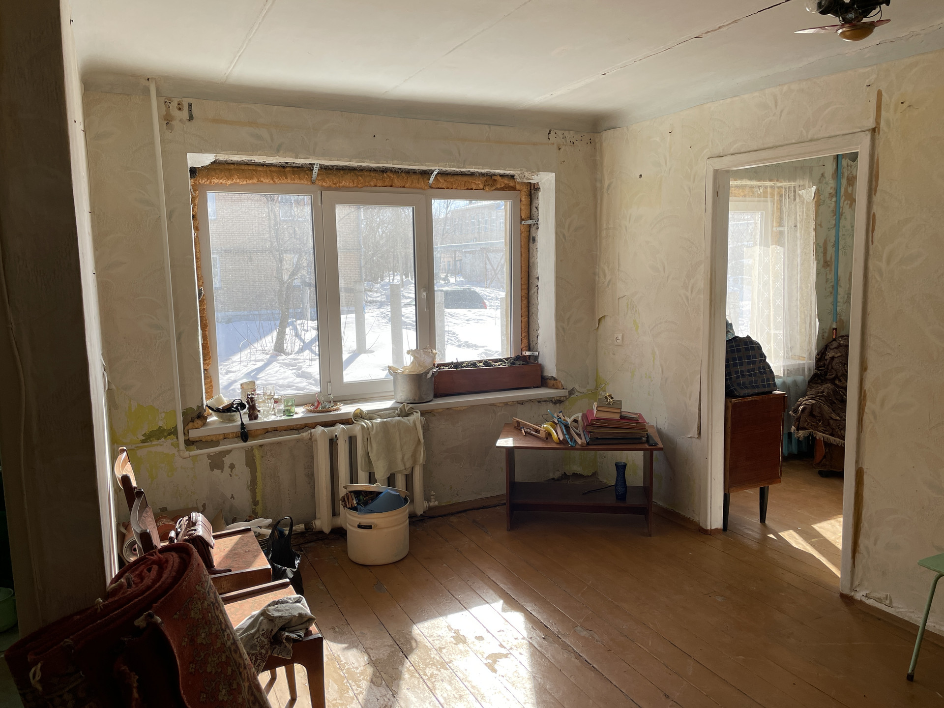 1/4, 41,8 кв.м., комнаты смежные, санузел совмещен, два новых пластиковых окна (зал и спальня 2-х камерный стеклопакет), батареи чугун, новая газовая колонка-автомат, пол деревянный, двери массив. Отличная возможность сделать ремонт на свой вкус!
