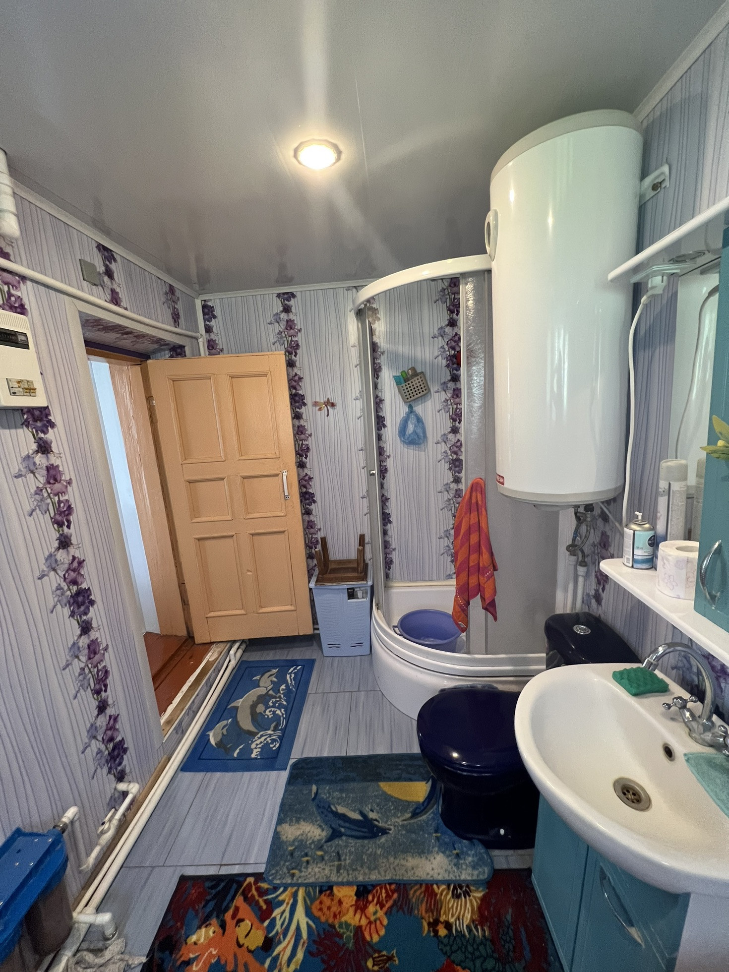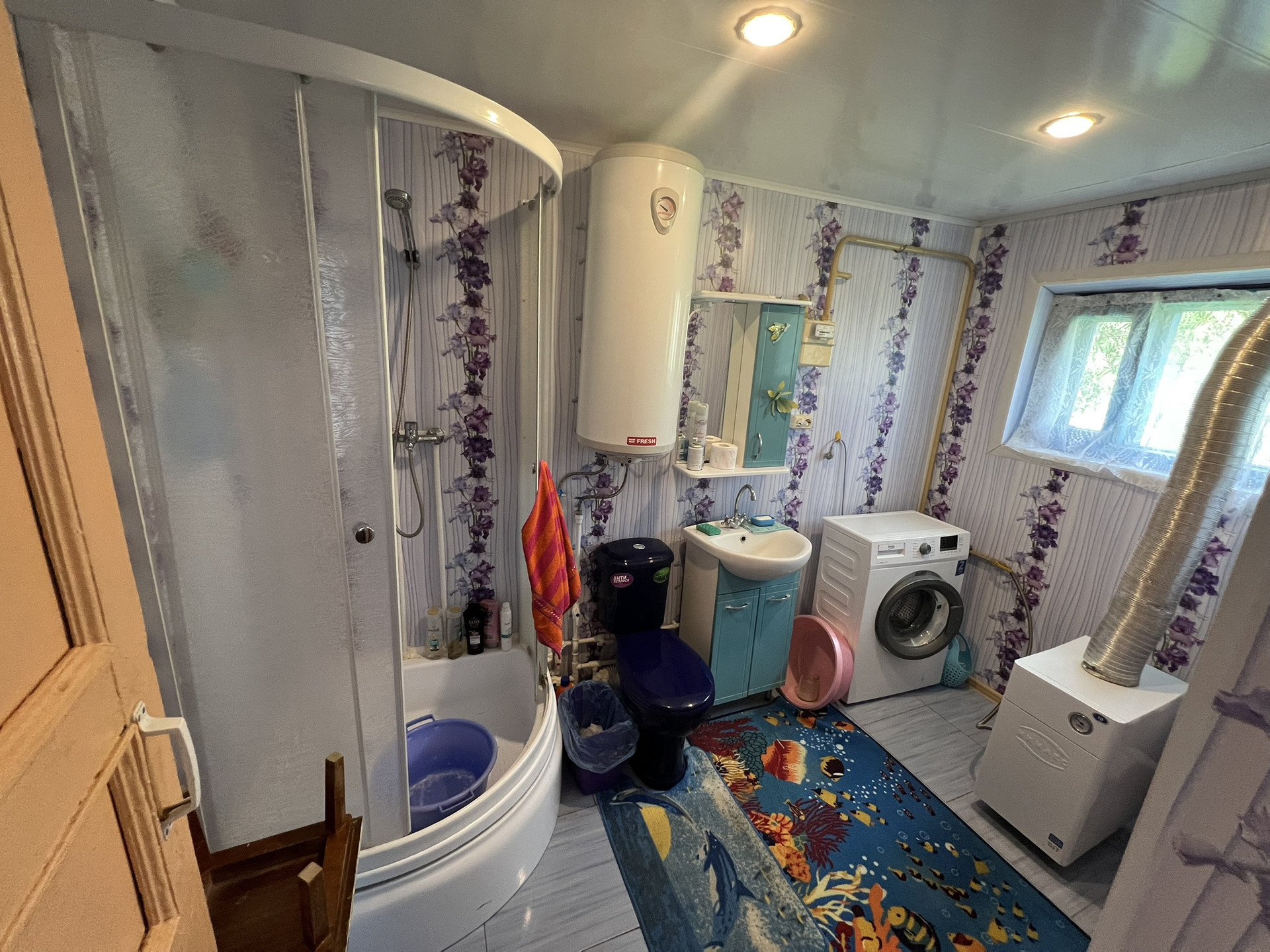 В основной части дома установлена душевая с туалетом, пол с подогревом.