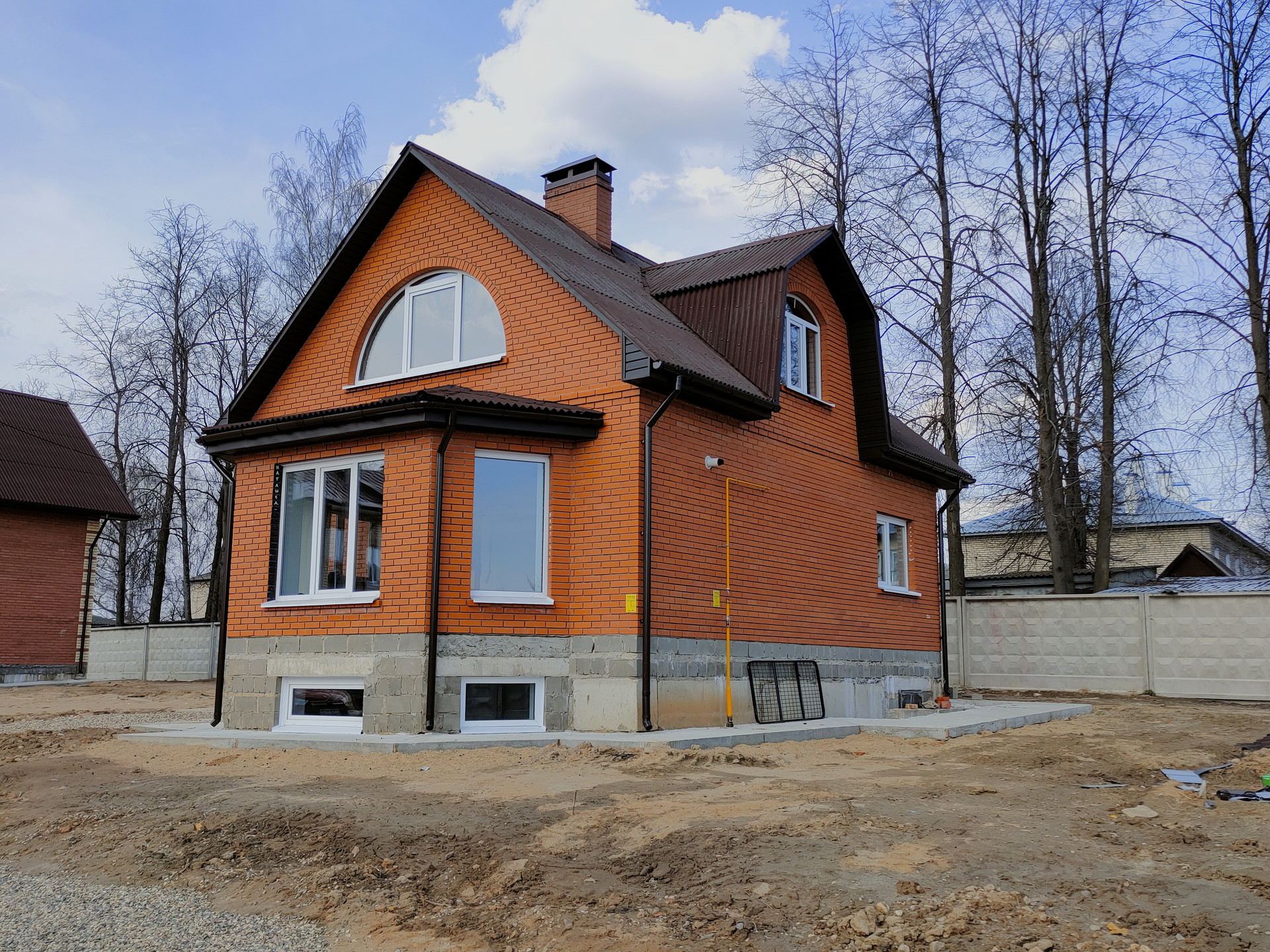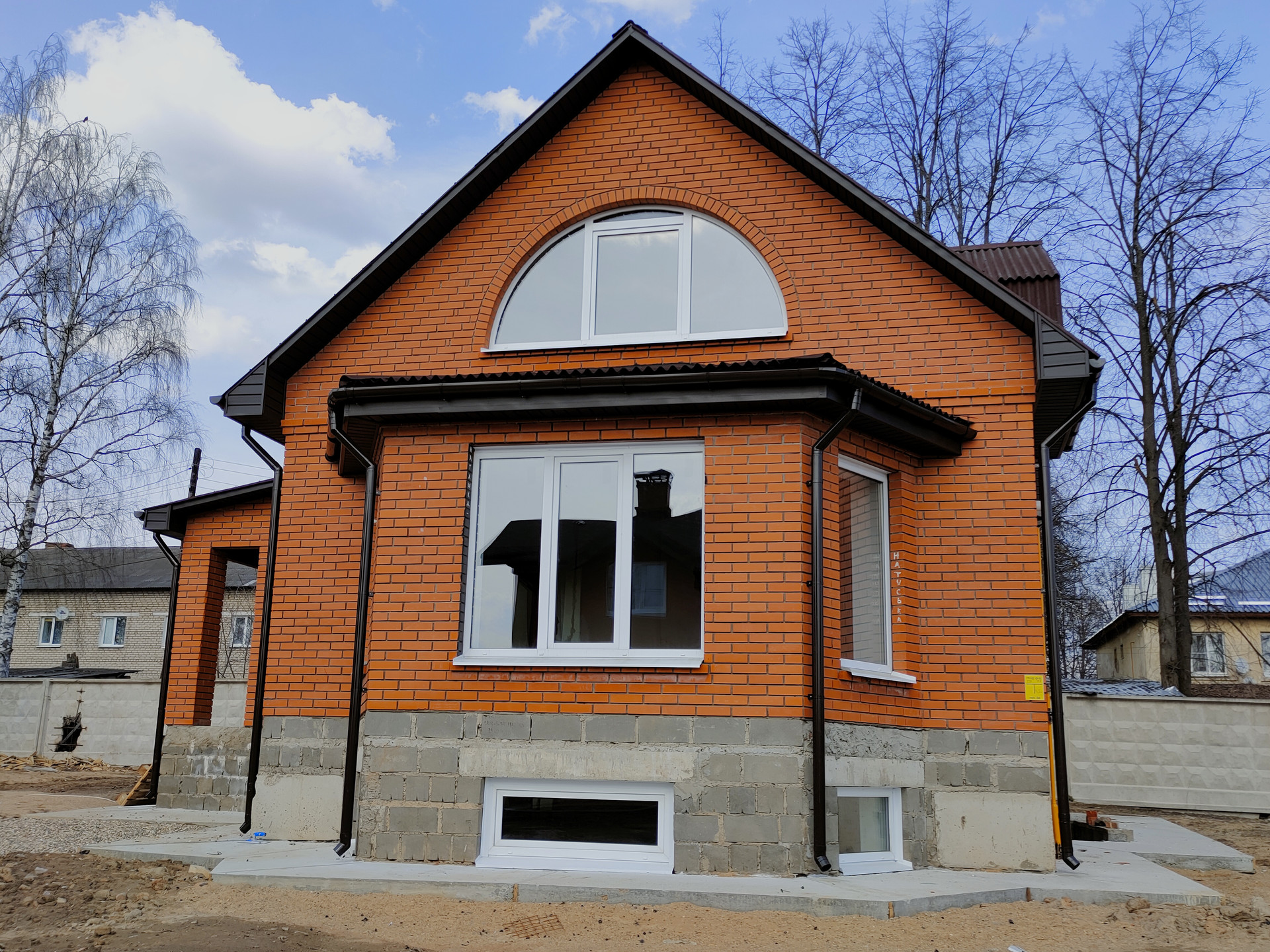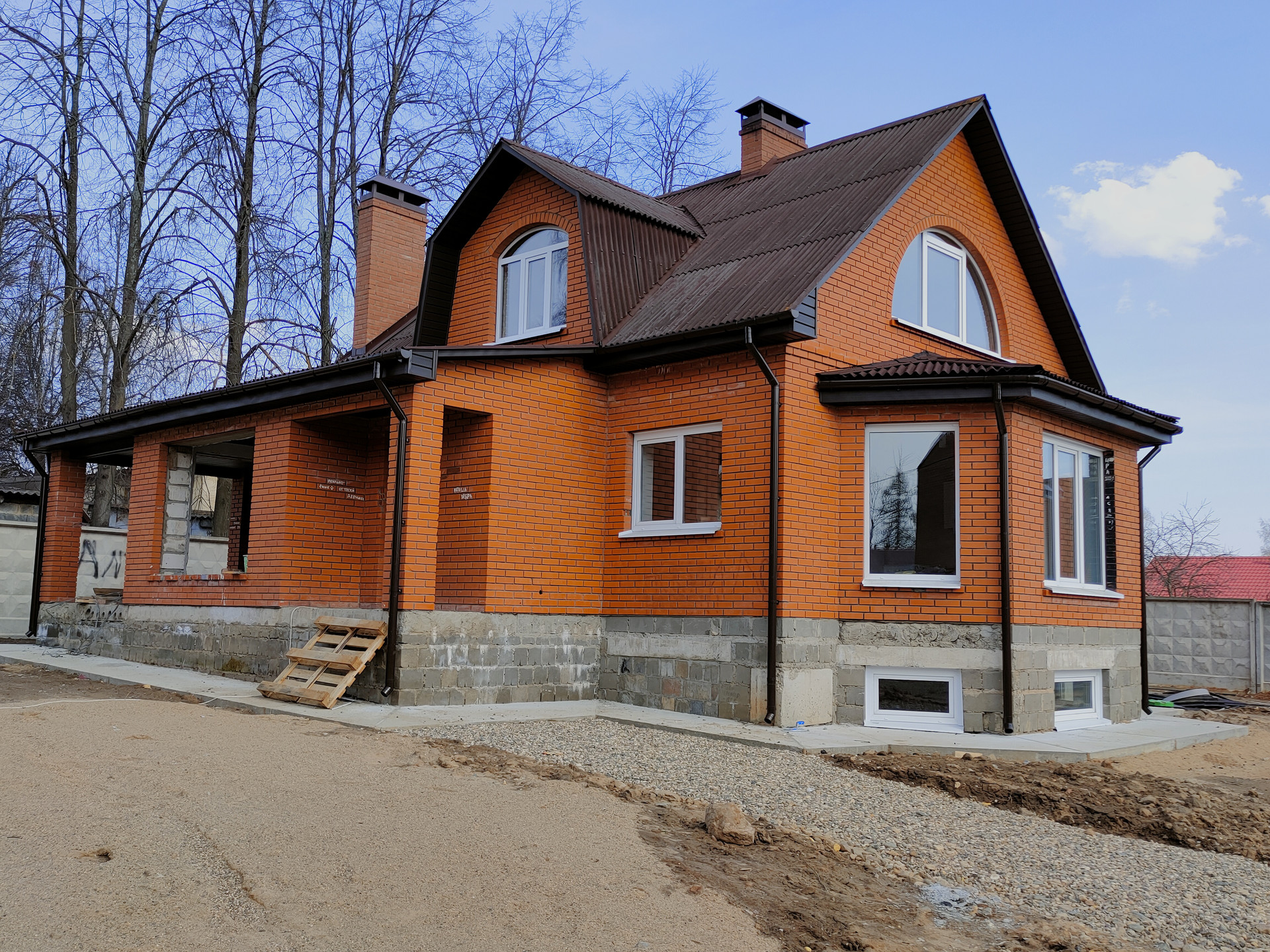 Стены - газобетонные блоки, облицовка лицевым пустотелым керамическим кирпичом;