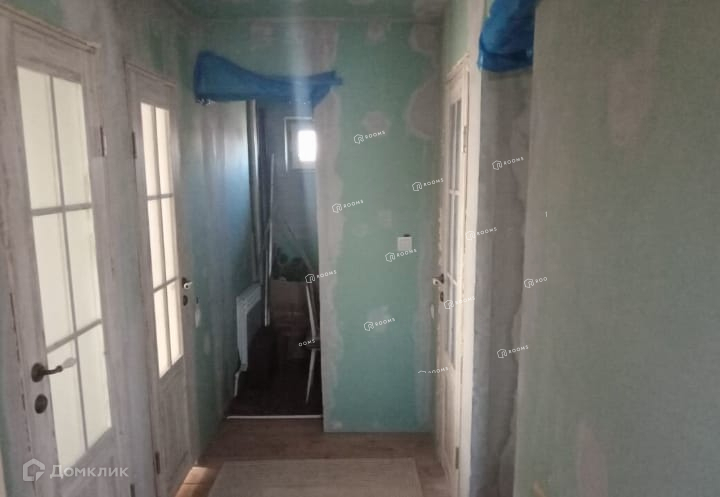 на втором этаже: 4 комнаты и санузел. Стены обшиты гипсокартоном так же под обои, везде установлены межкомнатные двери.