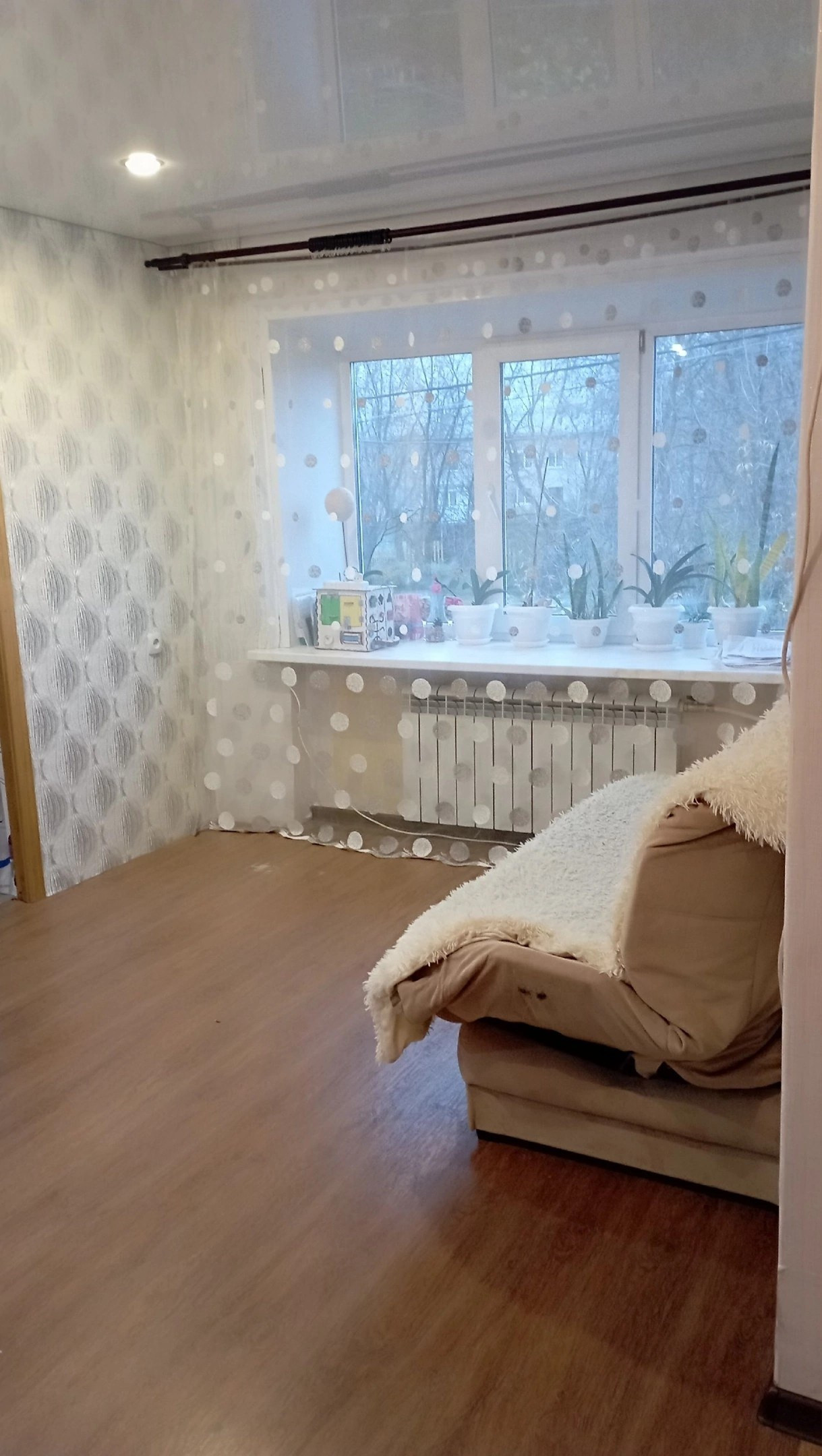 Квартира в хорошем состоянии   общей площадью 42,4 м2. Квартира переделана в 3-х комнатную, документы готовы к сделке. Сделан качественный ремонт в светлых тонах: на полу ламинат, пластиковые окна, современные батареи, надёжная входная дверь. Квартира не требует вложений можно сразу заезжать и раскладывать свои вещи.