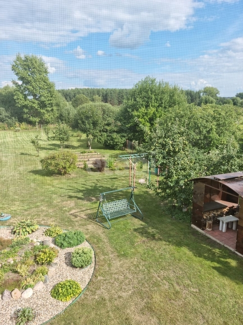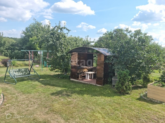 На участке есть много плодовых и декоративных деревьев и кустарников. Деревянные грядки. На территории есть новых большой хозблок, качели, мангальная зона, территория украшена клумбами с многолетними цветами.
