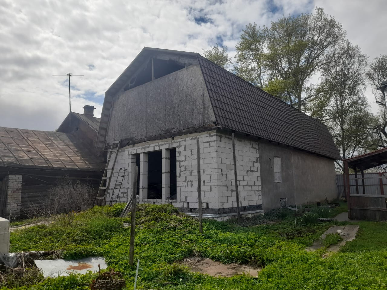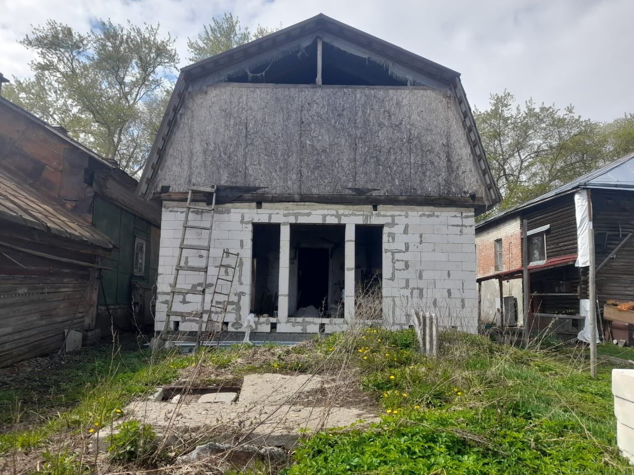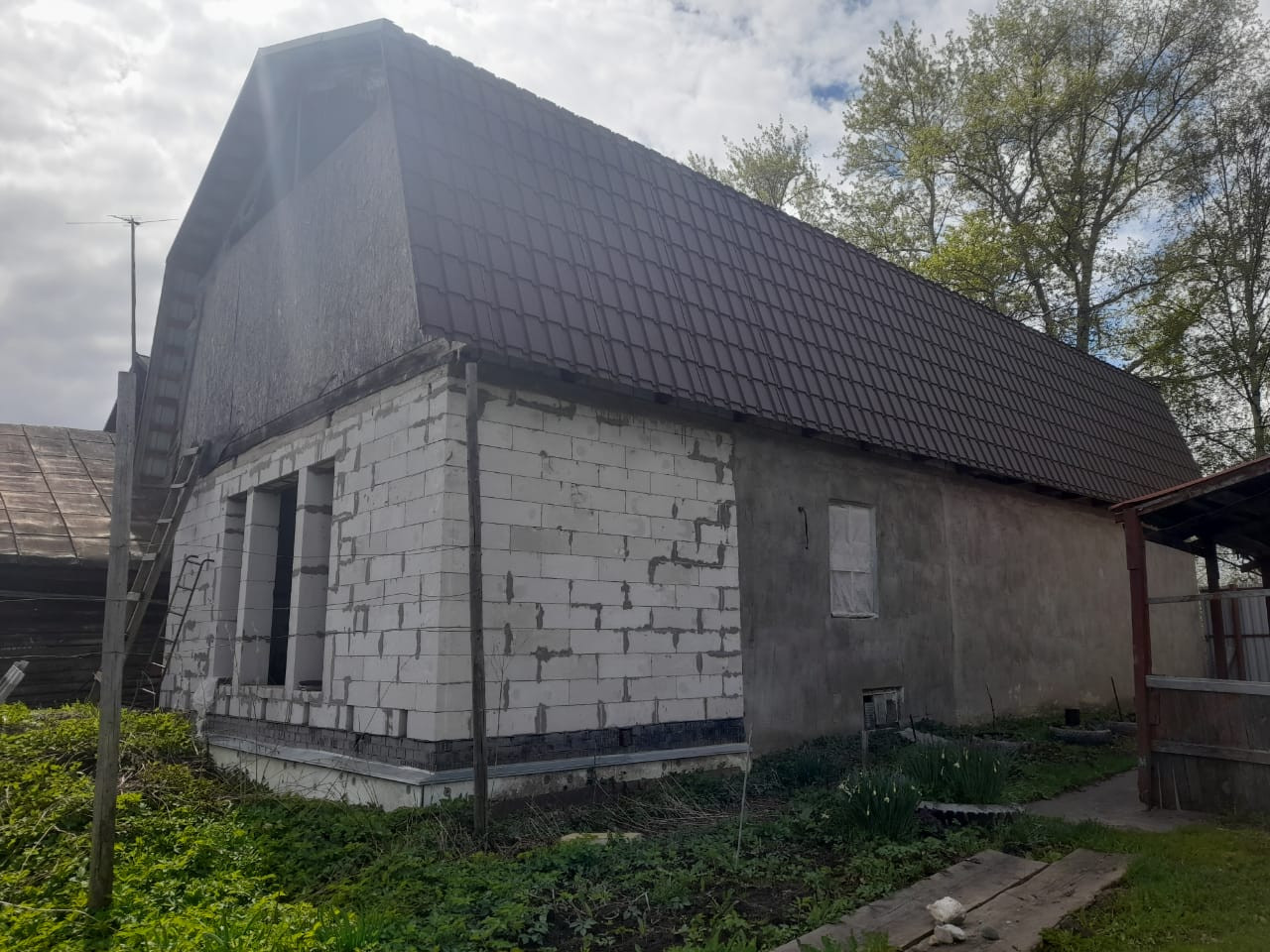 Дом из пеноблоков под отделку на участке 6,3 сот., есть возможность присоединить еще землю.