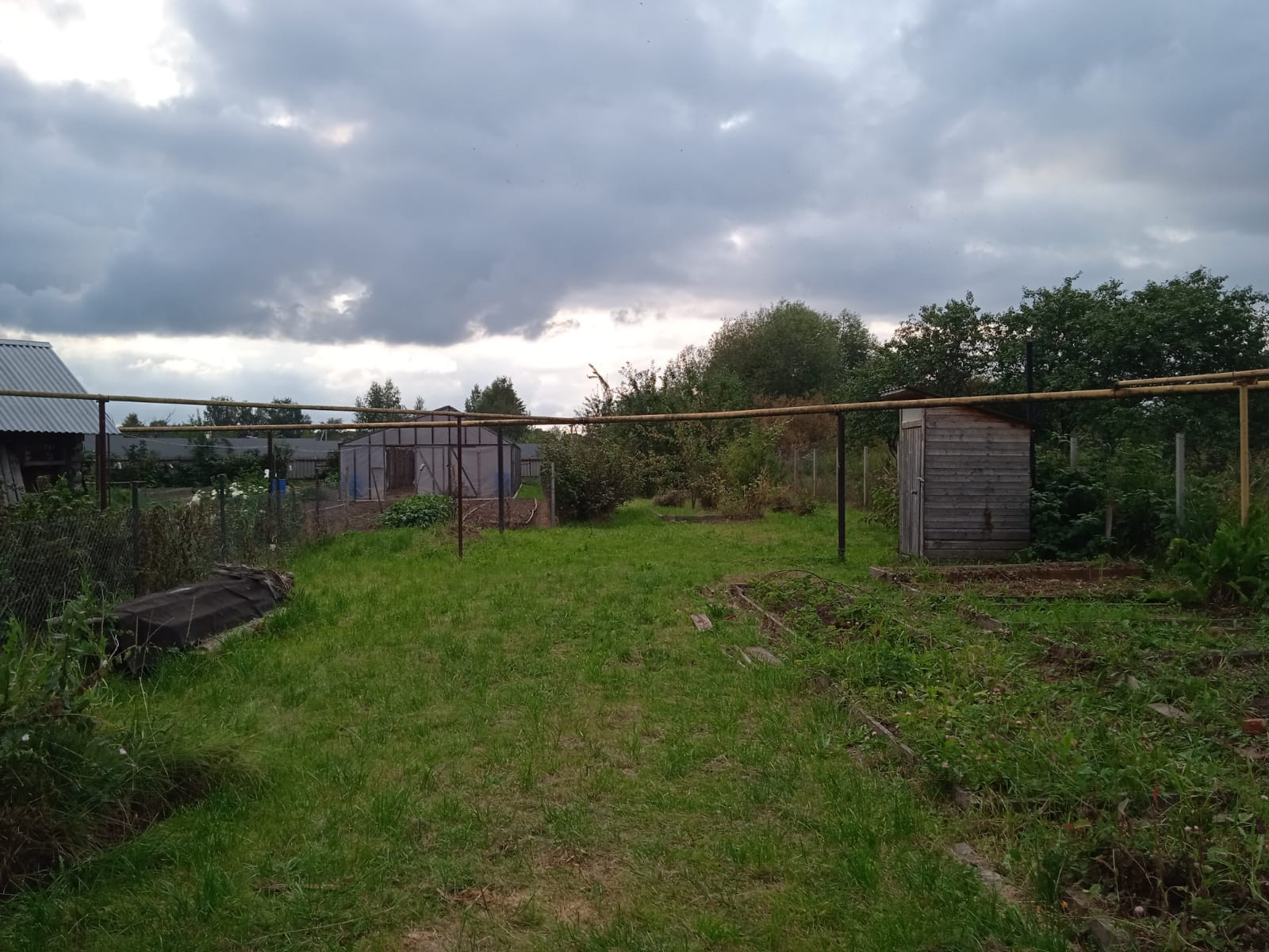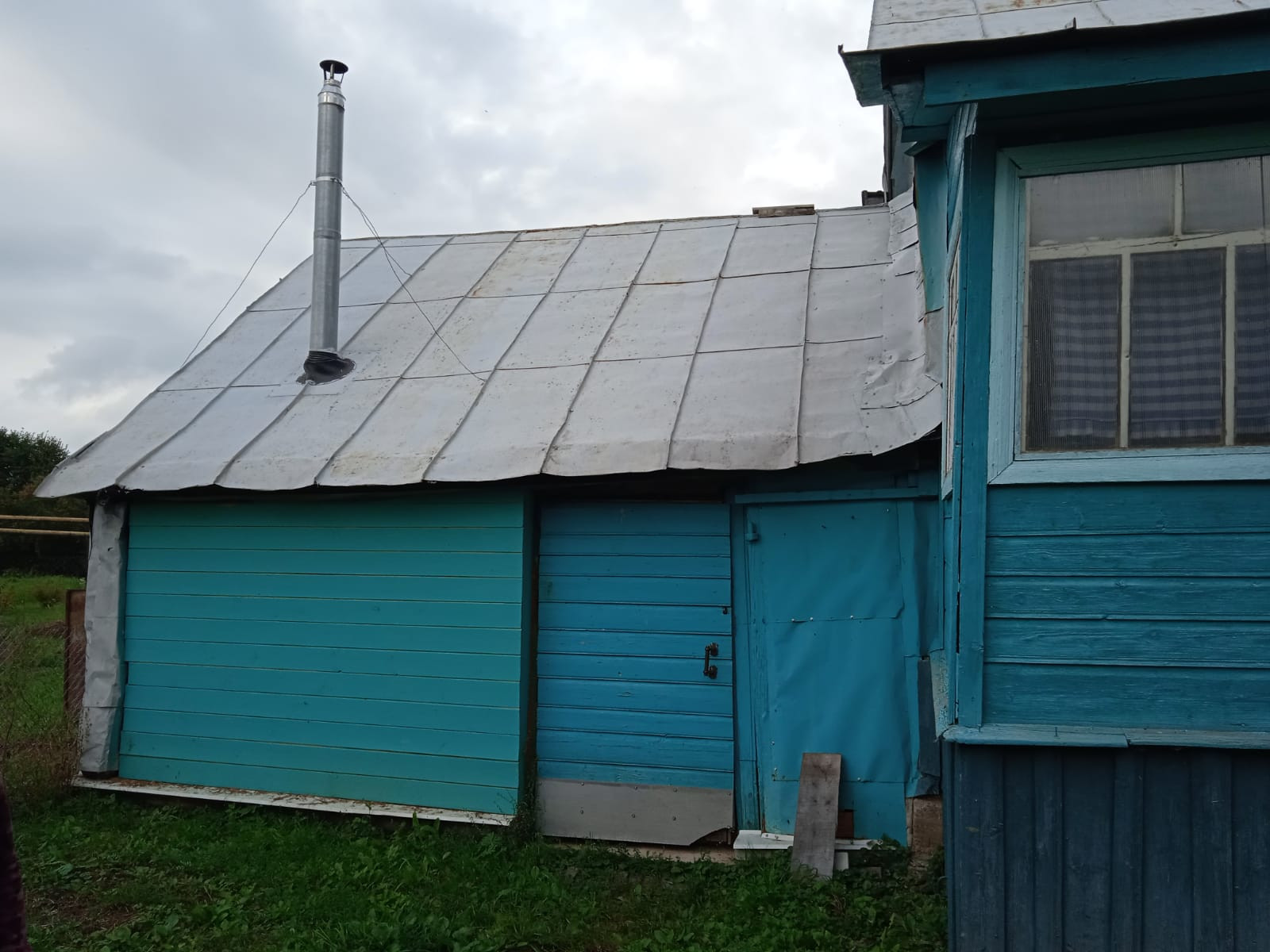 Двухскатная металлическая крыша.