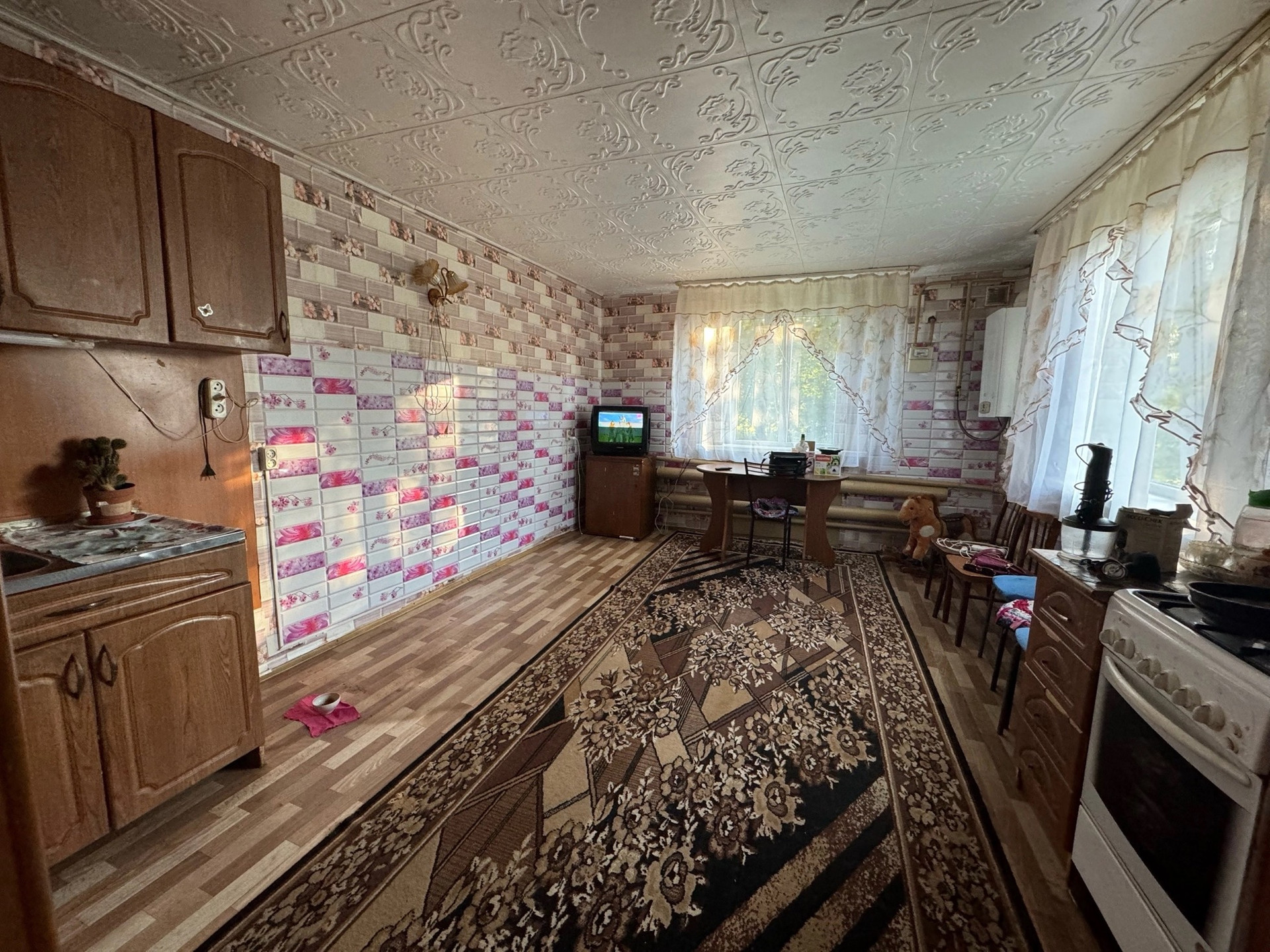 Продается дом 2 этажа, 4 комнаты, большая кухня, туалет- унитаз, ванна в доме, водопровод частный (насосная станция, колодец), канализация, газовое отопление, баня рядом с домом, хозяйственный блок из 3- х сараев, есть сарай для ведения птицеводства.Рядом детская площадка, до школы доставка школьным автобусом (остановка в 100 м. от дома). До центра поселка доставка рейсовым автобусом, такси.