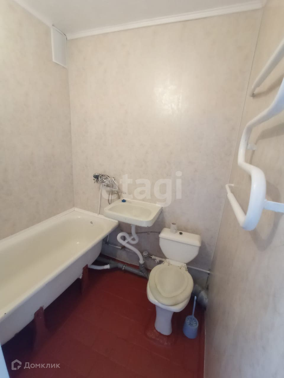 Санузел совмещенный стоит ванна. Стены обшиты панелями