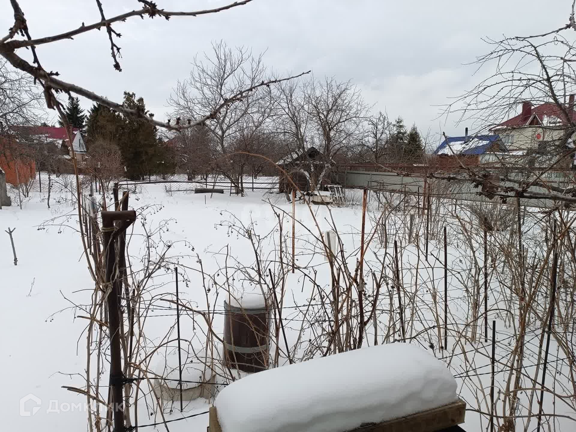 Сад и огород, малина, клубника, смородина, яблоня, большое дерево черешни и прочее.